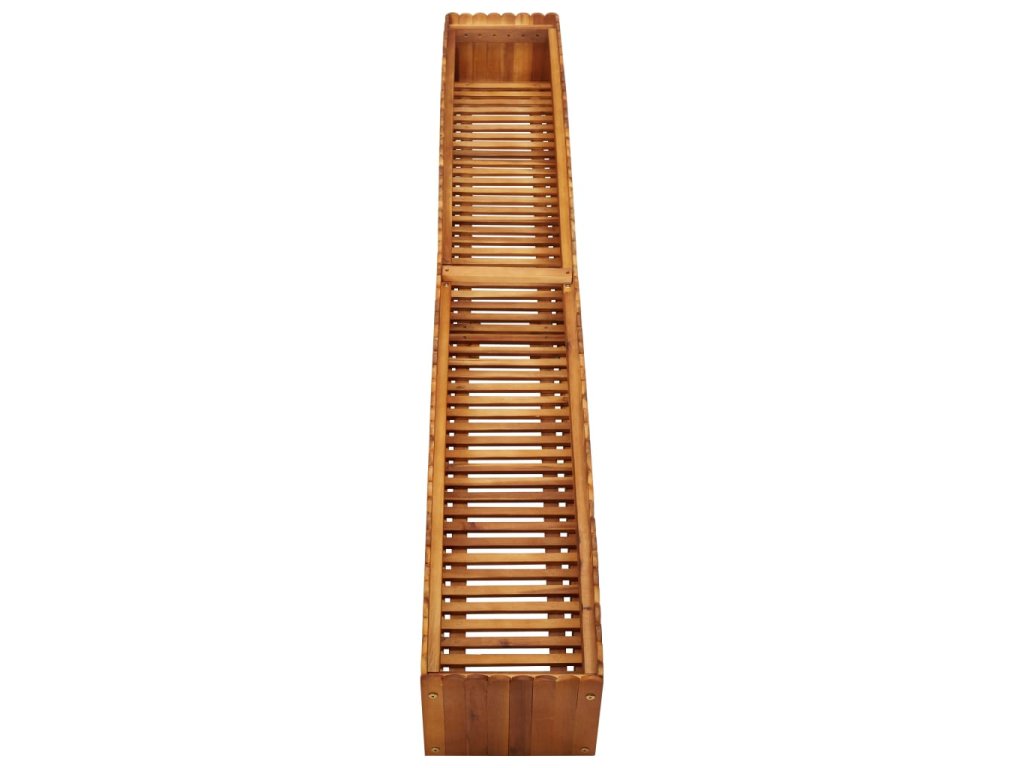 Truhlík s nenápadným rustikálním designem vnese do vašeho venkovního bydlení dotek přírodních barev. Je vyrobený z robustního, masivního akáciového dřeva, takže skvěle odolává povětrnostním vlivům, a proto se hodí pro venkovní použití. Dno truhlíku je laťkové, což vevnitř účinně zadržuje půdu, přitom však dovoluje odtékání přebytečné vody.