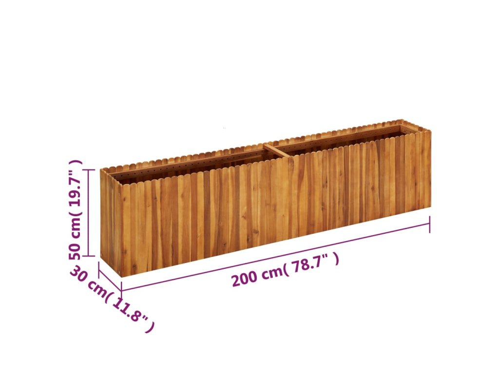 Truhlík s nenápadným rustikálním designem vnese do vašeho venkovního bydlení dotek přírodních barev. Je vyrobený z robustního, masivního akáciového dřeva, takže skvěle odolává povětrnostním vlivům, a proto se hodí pro venkovní použití. Dno truhlíku je laťkové, což vevnitř účinně zadržuje půdu, přitom však dovoluje odtékání přebytečné vody.