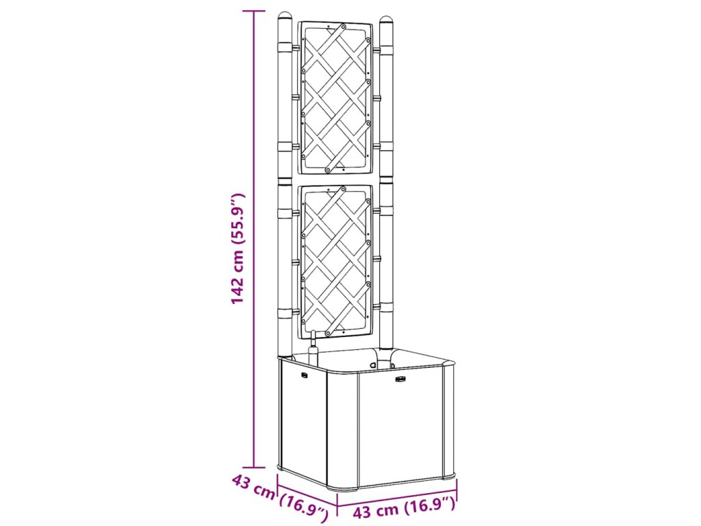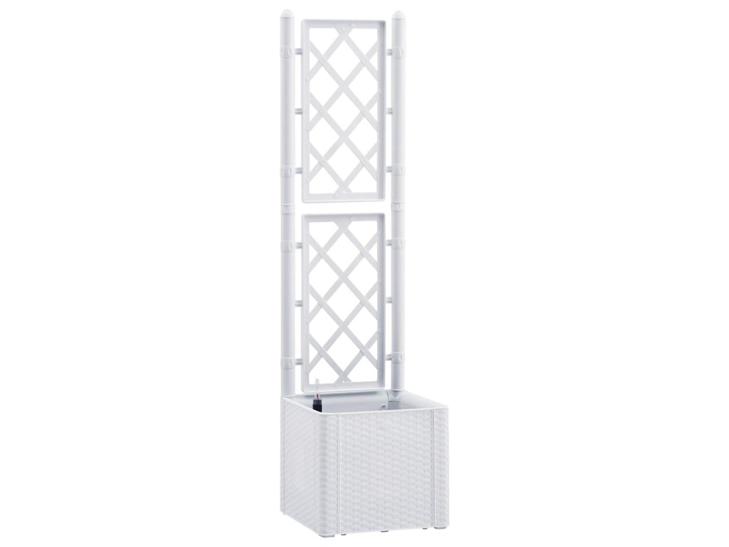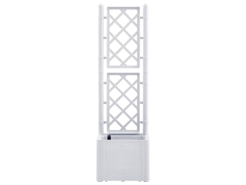 Vytvořte svým květinám krásné pozadí s tímto elegantním, funkčním a jedinečným samozavlažovacím vyvýšeným záhonem! Do tohoto truhlíku s treláží se vejde velké množství zelených rostlin a květin.