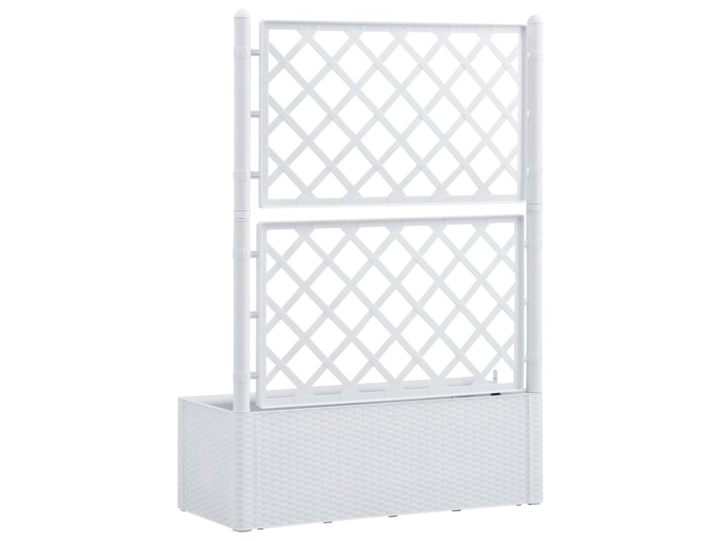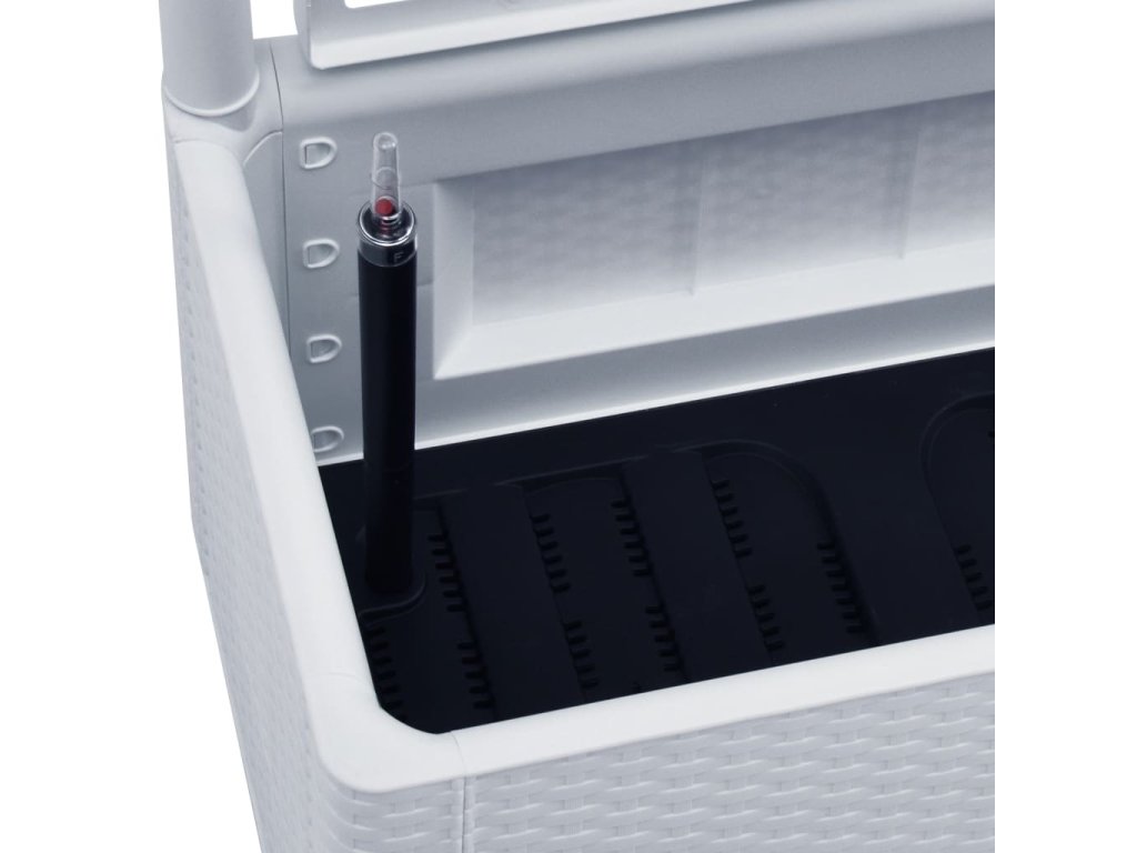 Zabudovaná treláž nabízí vynikající podporu pro popínavé rostliny, jako jsou bylinky, rajčata, fazole atd. Je vyrobená z robustního UV- a mrazuvzdorného plastu a je vhodný pro vnitřní i venkovní použití. Design velmi realisticky připomíná pravou ratanovou strukturu. Materiál lze mýt vodou a snadno se čistí. Truhlík má 90l nádrž na vodu, ze které může automaticky zavlažovat rostliny. Zároveň je vybavený otvory pro přepad vody, které zabraňují přetečení. Indikátor úrovně vody je součástí balení.