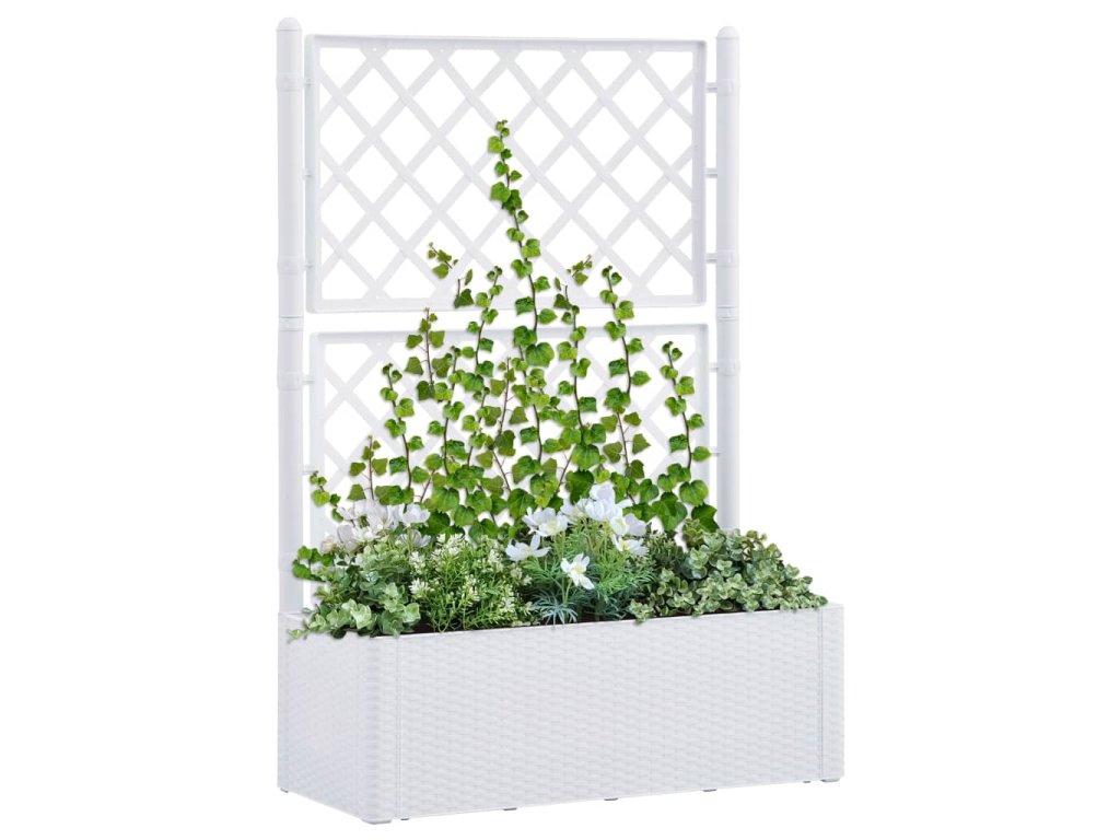 Vytvořte svým květinám krásné pozadí s tímto elegantním, funkčním a jedinečným samozavlažovacím vyvýšeným záhonem! Do tohoto truhlíku s treláží se vejde velké množství zelených rostlin a květin.