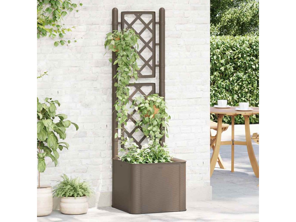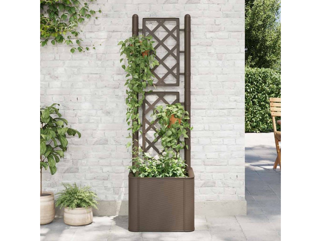 Vytvořte svým květinám krásné pozadí s tímto elegantním, funkčním a jedinečným samozavlažovacím vyvýšeným záhonem! Do tohoto truhlíku s treláží se vejde velké množství zelených rostlin a květin.