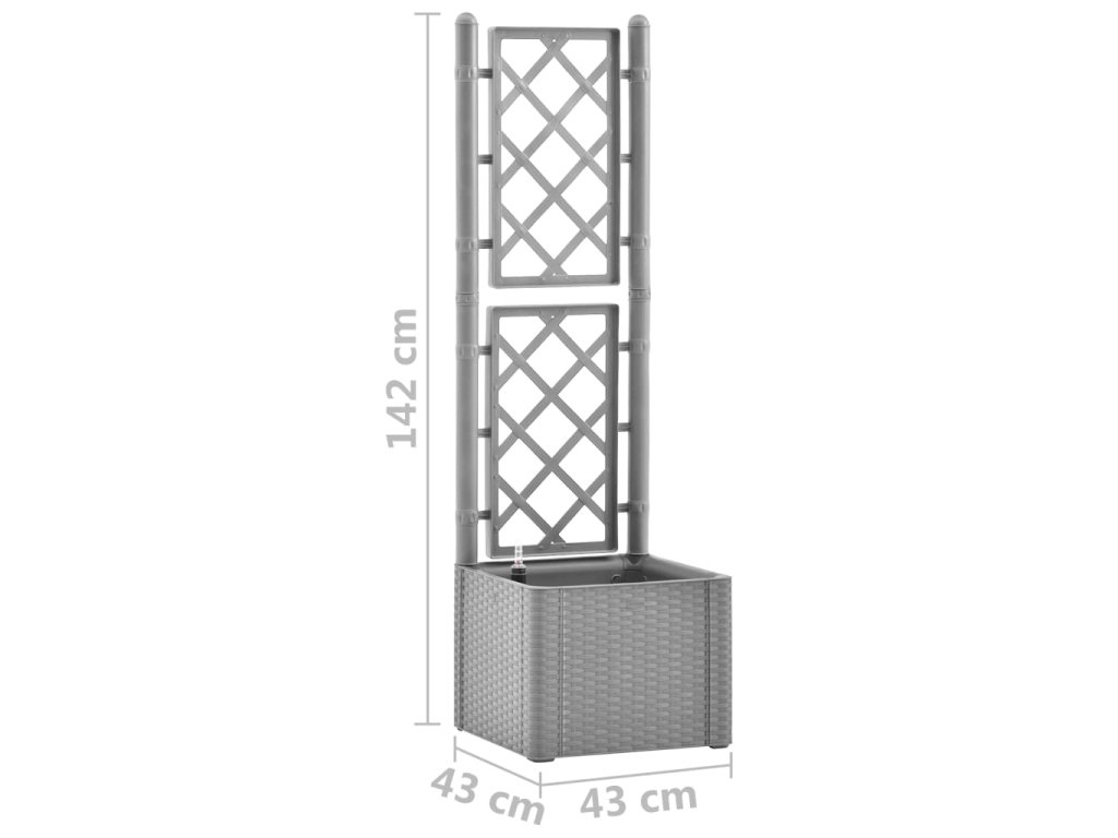 Vytvořte svým květinám krásné pozadí s tímto elegantním, funkčním a jedinečným samozavlažovacím vyvýšeným záhonem! Do tohoto truhlíku s treláží se vejde velké množství zelených rostlin a květin.
