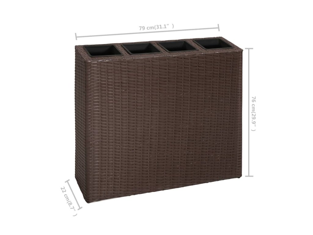 Truhlík je vyrobený z trvanlivého a voděodolného ratanu a bude se na vaší zahradně skvěle vyjímat. Těsně pletená struktura vytváří hladký povrch a zároveň zaručuje výtečnou stabilitu. Uvnitř ratanového truhlíku se nachází 4 plastové květináče. Jelikož je každý díl vyrobený z kvalitního materiálu, celá sada má velmi dlouhou životnost. Můžete v ní pěstovat všechny druhy živých zelených rostlin i květin.