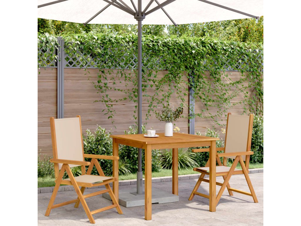 - Materiál: masivní akáciové dřevo s olejovou povrchovou úpravou, textil (100% polyester)