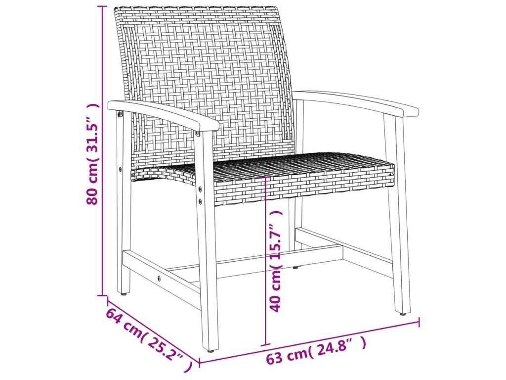 - Materiál: PE ratan, masivní akáciové dřevo, kov