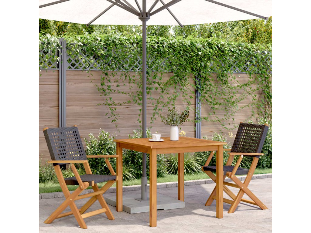 - Materiál: masivní akáciové dřevo s olejovaným povrchem, polyratan