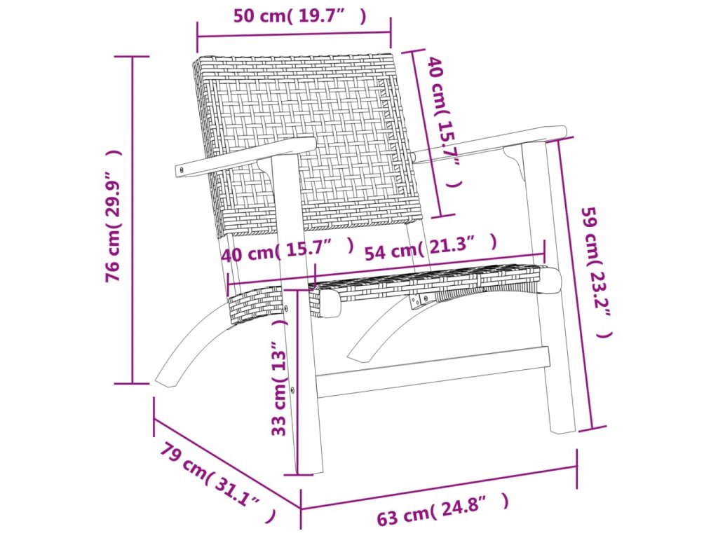 - Materiál: PE ratan, práškově lakovaná ocel, masivní akáciové dřevo s olejovou povrchovou úpravou