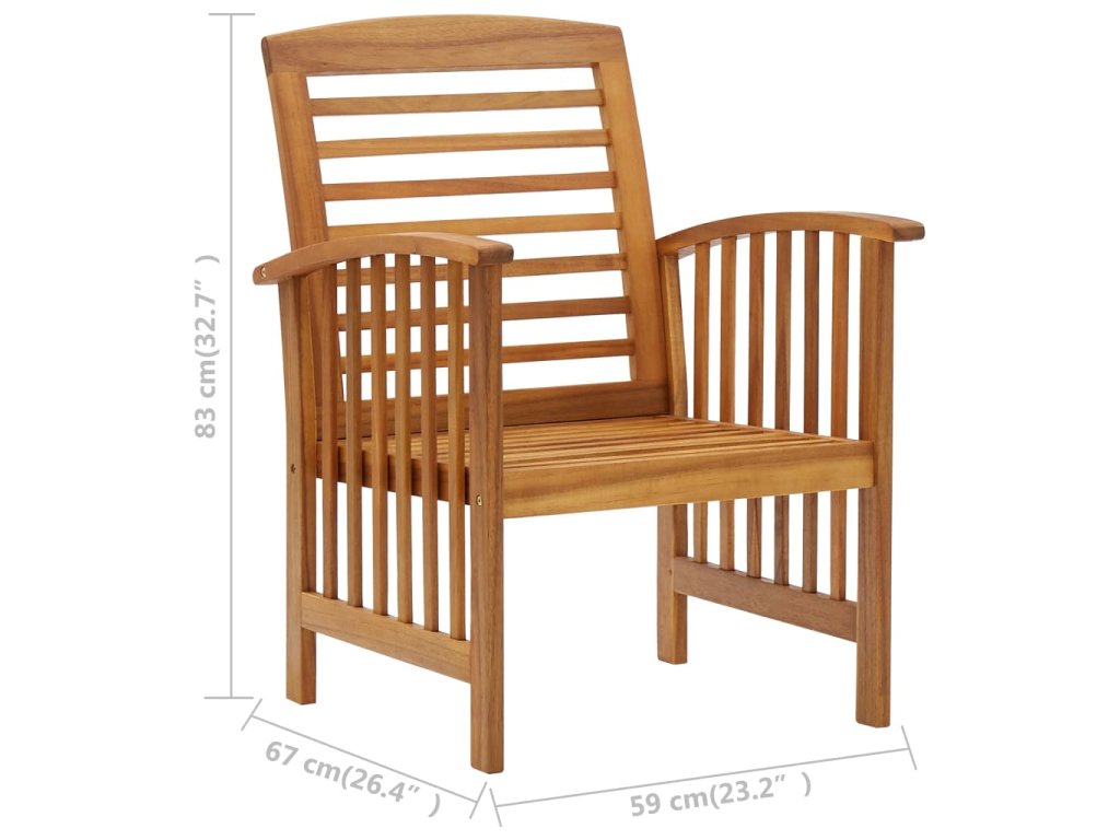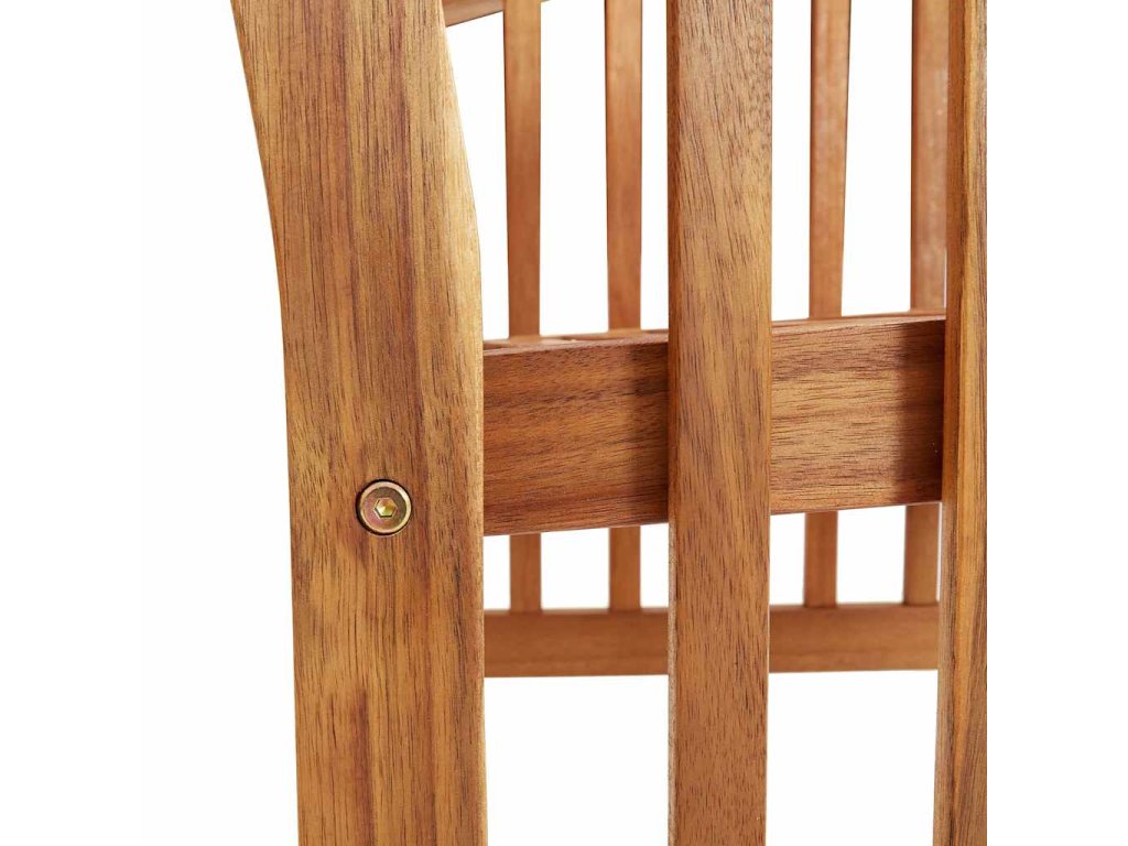 Zahradní křeslo je vyrobené z masivního akáciového dřeva s olejovým povrchem, je stabilní a má dlouhou životnost. Řemeslné zpracování a krásná kresba dřeva dává každému kusu nábytku jeho charakteristický a neopakovatelný vzhled.