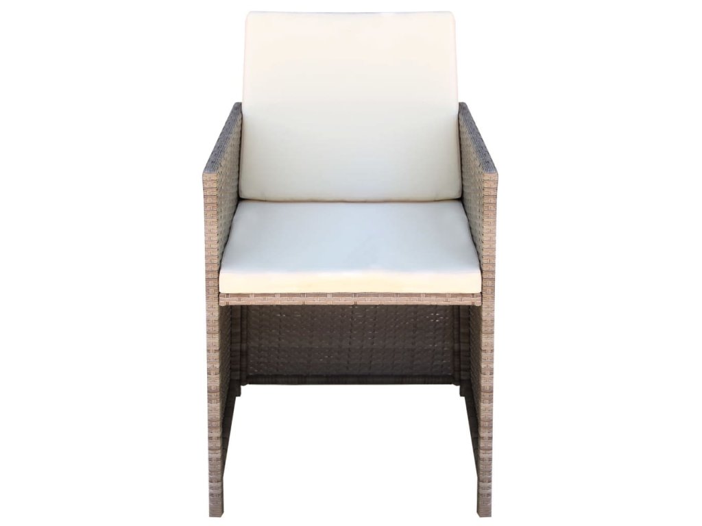 Ocelové rámy s práškovým povlakem činí židle pevnými a robustními a díky své lehké konstrukci se snadno pohybují. Vyrobené z odolného, nepromokavého PE ratanu, jídelní židle se snadno čistí. Tlusté, měkké, pěnové sedadlo a zadní polštáře jsou velmi pohodlné a jsou vyrobeny z vodoodpudivého polyesteru. Odnímatelné a omyvatelné povlaky jsou vybaveny zipem.