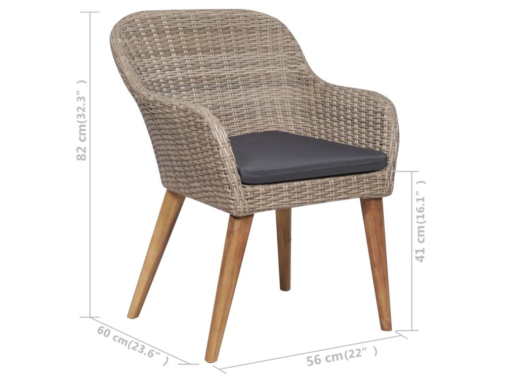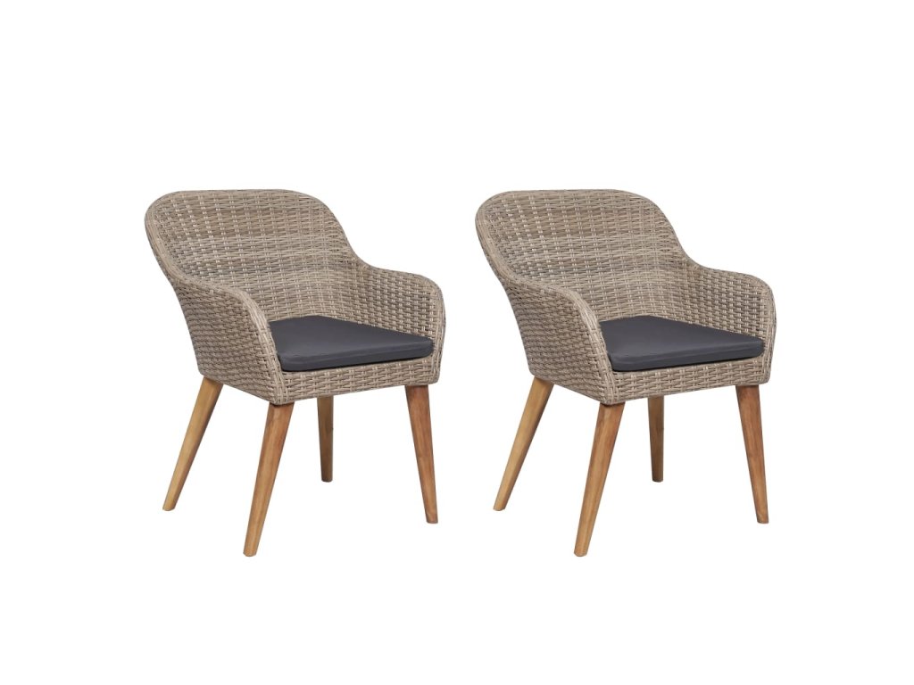 Sada židlí je vyrobena z vysoce kvalitního polyratanu, který skvěle odolává klimatickým vlivům. Je tudíž je velmi odolná a jako dělaná na každodenní venkovní použití. Navíc se snadno čistí. Ocelové rámy s práškovým nástřikem židlím dodávají pevnost a trvanlivost. Jejich konstrukce je však zároveň lehká, takže je můžete bez obtíží přesouvat. Silně polstrované podušky vám poskytnou maximální pohodlí. Potahy podušek můžete stáhnout a vyprat. Sadu je třeba nejprve sestavit. Balení obsahuje 2 jídelní židle a 2 podušky na sedáky.