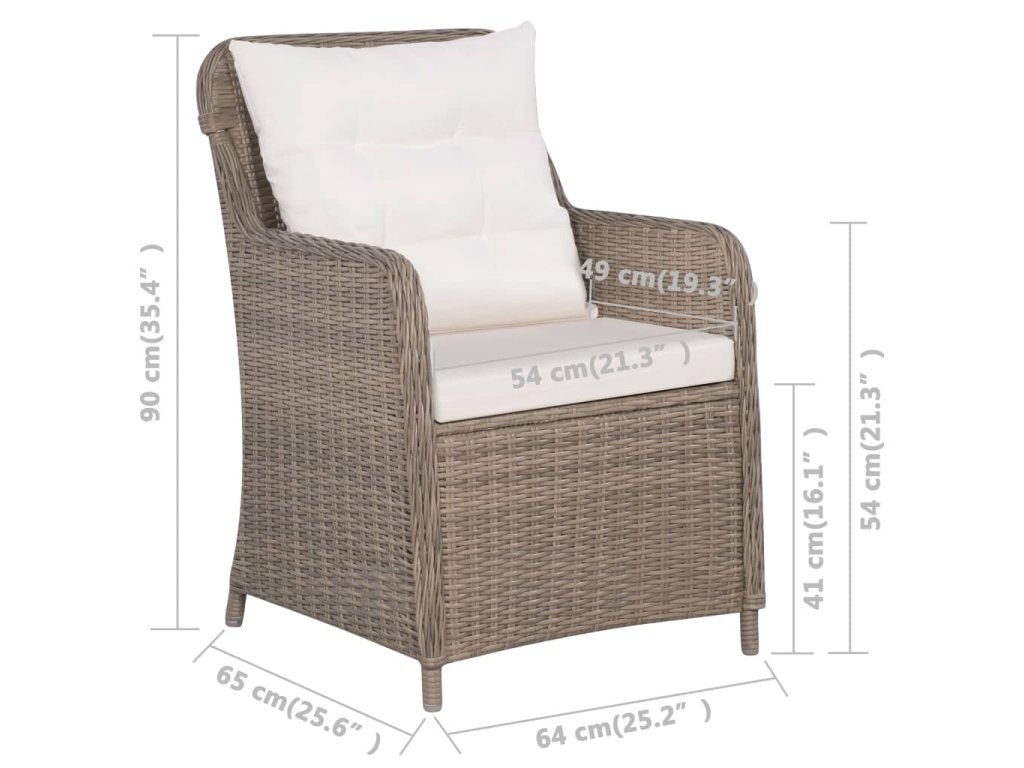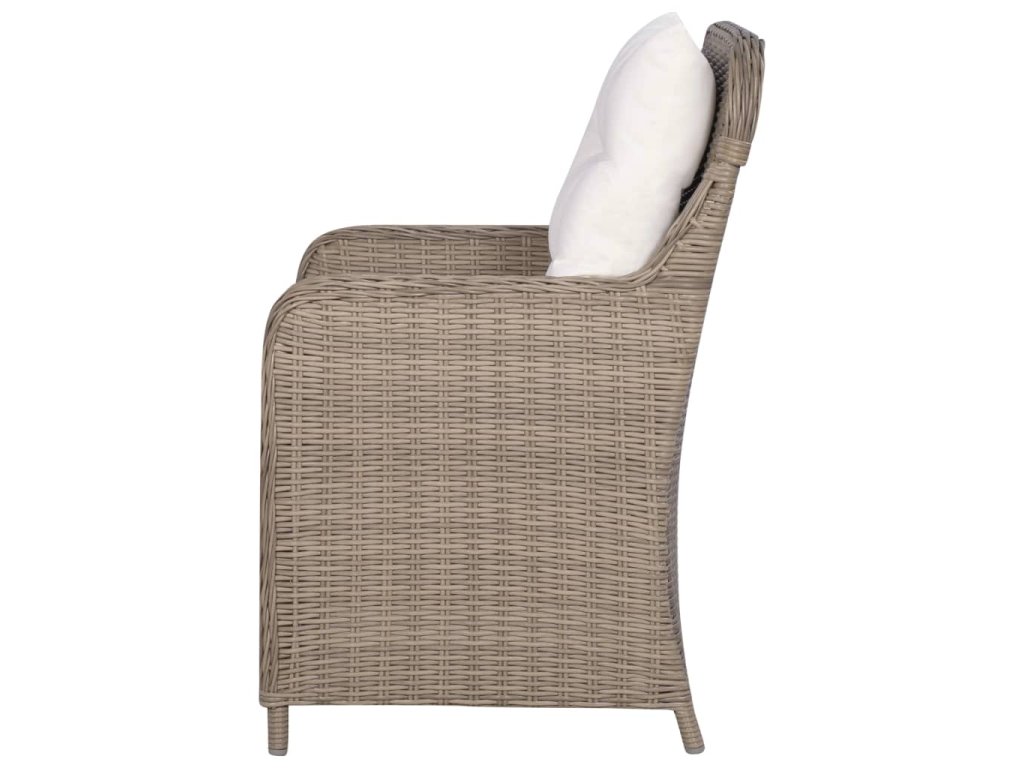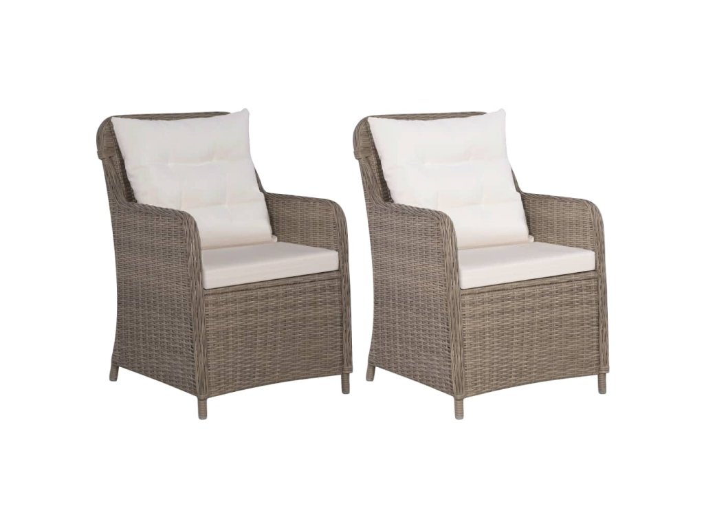 Židle jsou vyrobeny z polyratanu, který je lehký, voděodolný, snadno se čistí a je vhodný pro celoroční venkovní použití. Ocelové rámy s práškovým nástřikem zajišťují jejich mimořádnou stabilitu a výtečnou odolnost. Ergonomicky navržený tvar a silně polstrované, odnímatelné podušky s pěnovou výplní vám při sezení poskytnou maximální pohodlí. Polyesterové potahy podušek a polštářů jsou nenáročné na údržbu a lze je snadno sundat a vyprat. Montáž křesílek je jednoduchá. Balení obsahuje 2 křesílka, 2 podušky na sedáky a 2 polštáře za záda.