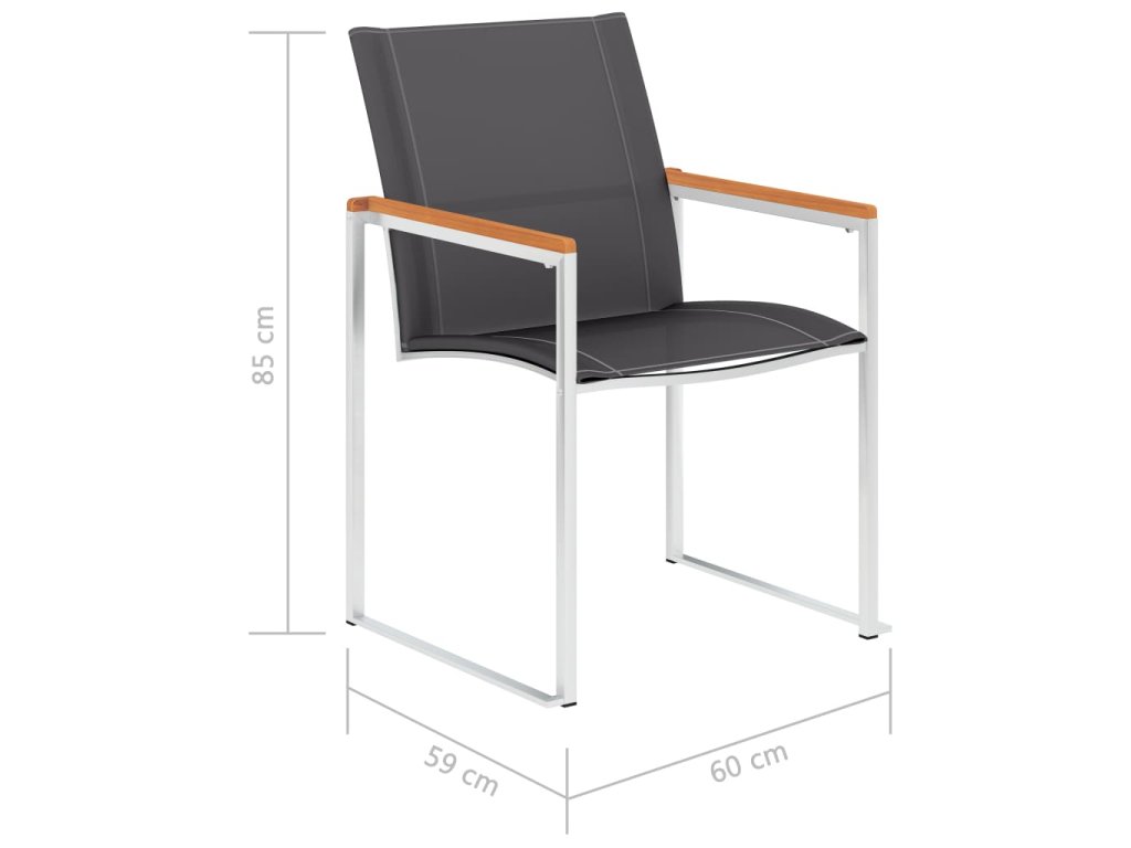 Židle jsou vyrobené z olejovaného masivního akáciového dřeva s teakovým vzhledem, textilenu a prvotřídní nerezové oceli. Proto mají dlouhou životnost, jsou odolné vůči rzi, robustní a snadno se čistí vlhkým hadříkem. Usaďte se k chutné večeři na zahradě nebo odpočívejte a užívejte si počasí s touto sadou klasických zahradních židlí. Zásilka obsahuje 2 židle.