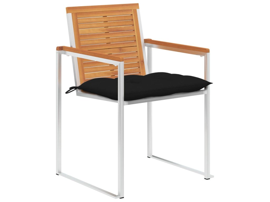 Jídelní židle jsou vyrobené z masivního akáciového dřeva a prvotřídní nerezové oceli. Proto mají dlouhou životnost, jsou odolné vůči rzi, robustní a snadno se čistí vlhkým hadříkem. Podušky, jež jsou více než jen praktický doplněk, mají také dekorativní funkci. Usaďte se k chutné večeři na zahradě nebo odpočívejte a užívejte si počasí s touto sadou klasických zahradních židlí.