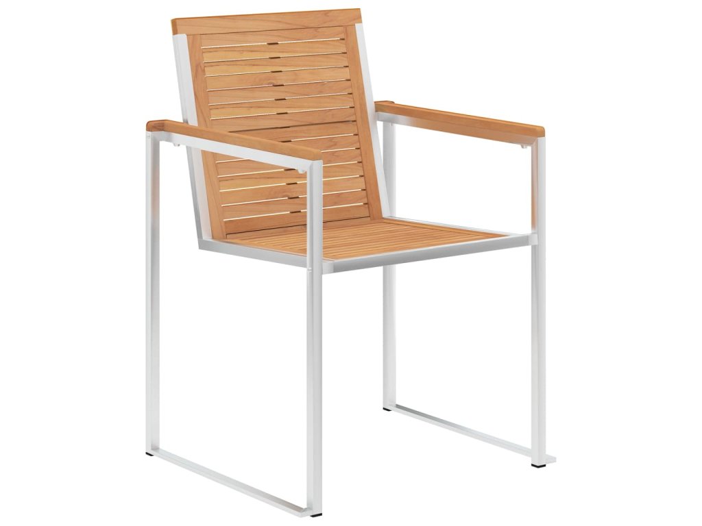 Nábytek je zhotovený z extrémně odolného teakového tvrdého dřeva, které již prošlo procesem smršťování, bylo uměle vysušené a poté jemně a dohladka obroušené. Teakové dřevo je oceňované pro svou výjimečnou pevnost a klimatickou odolnost, a proto je jedním z nejoblíbenějších materiálů pro výrobu zahradního nábytku. Je to skvělá volba, pokud si chcete pořídit venkovní výbavu, která vám vydrží sloužit dlouhá léta. Vzhledem k rámu z vysoce kvalitní nerezové oceli jsou židle zároveň robustní a odolné vůči korozi. Přiložená poduška slouží nejen jako praktický doplněk – plní také dekorativní funkci. Posaďte se a dopřejte si venku skvělou večeři nebo si jen tak odpočiňte a užívejte si počasí s touto klasickou sadou zahradních židlí.