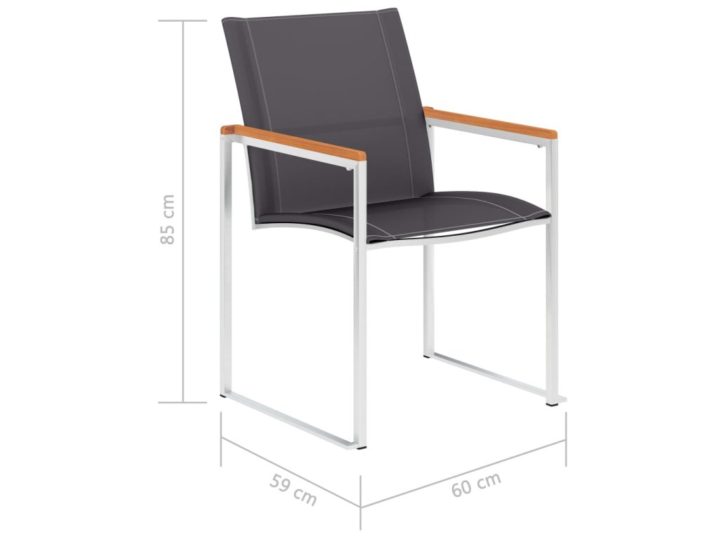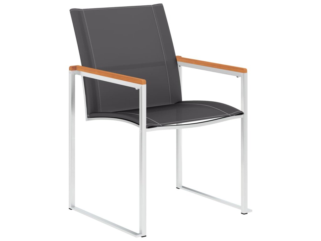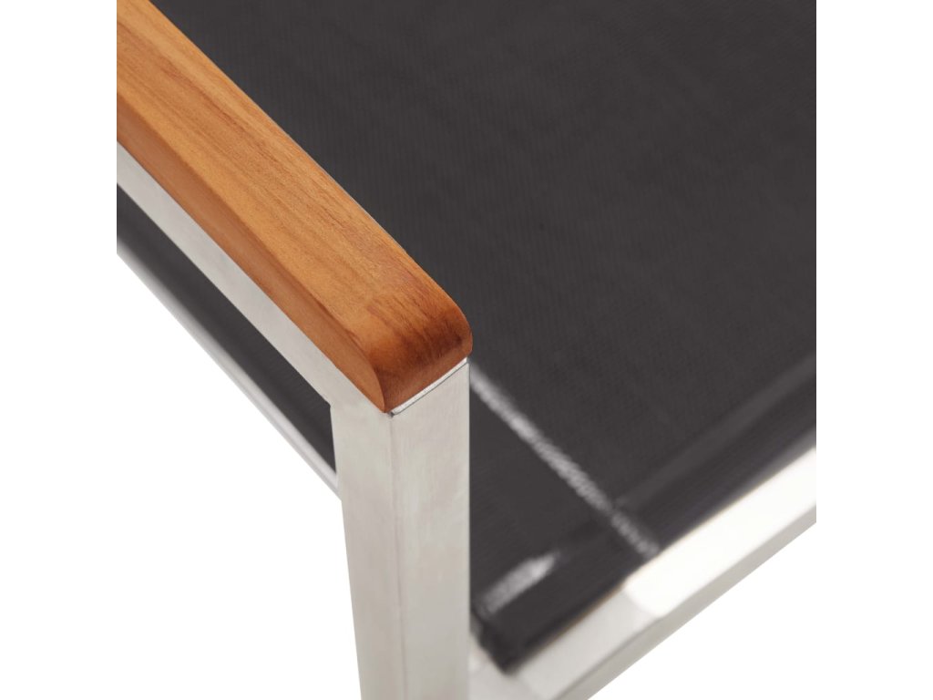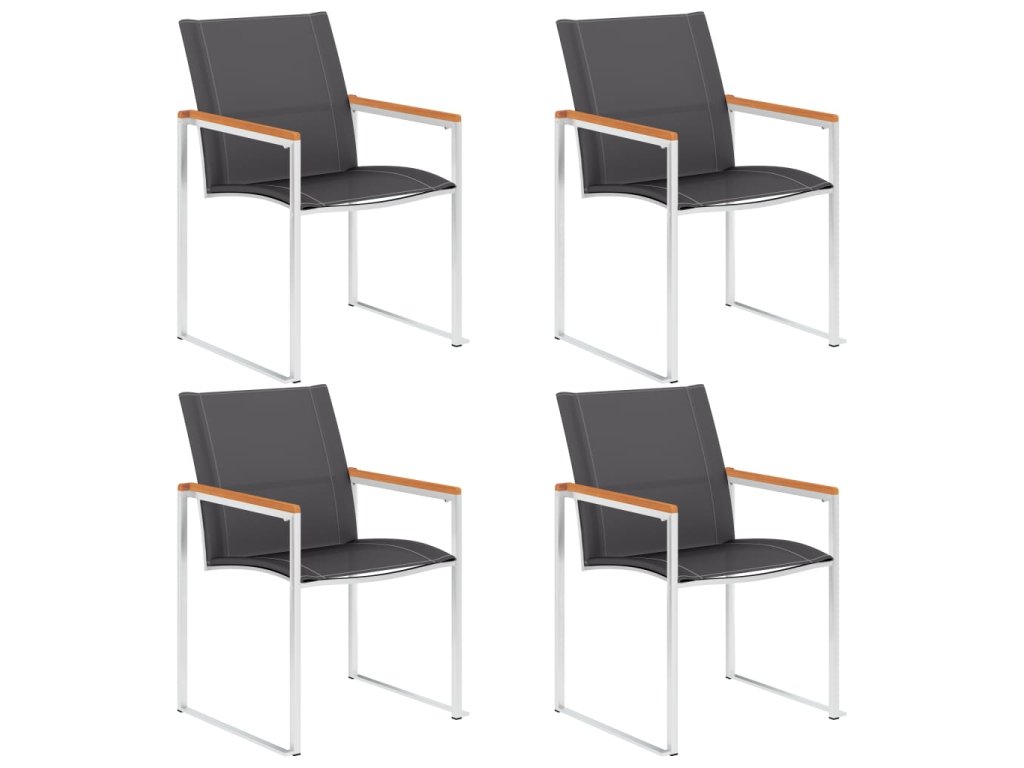 Židle jsou vyrobené z olejovaného masivního akáciového dřeva s teakovým vzhledem, textilenu a prvotřídní nerezové oceli. Proto mají dlouhou životnost, jsou odolné vůči rzi, robustní a snadno se čistí vlhkým hadříkem. Usaďte se k chutné večeři na zahradě nebo odpočívejte a užívejte si počasí s touto sadou klasických zahradních židlí. Zásilka obsahuje 4 židle.