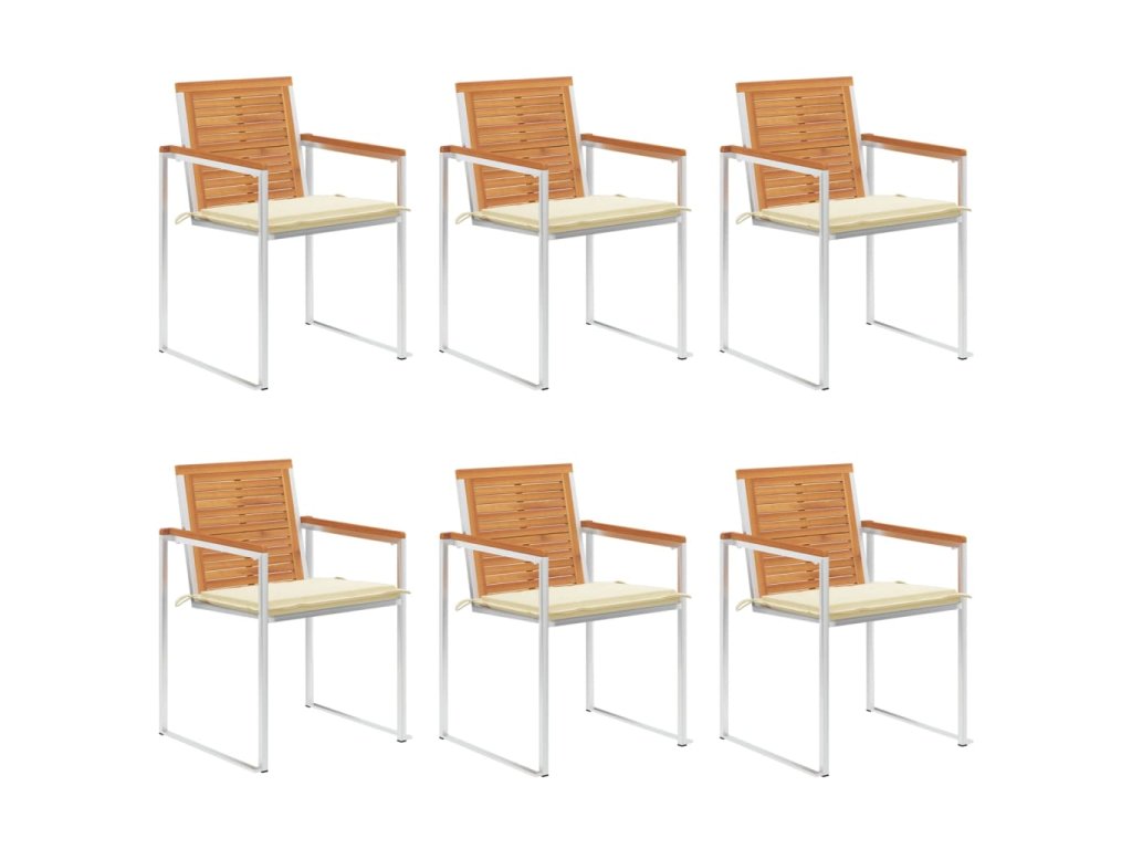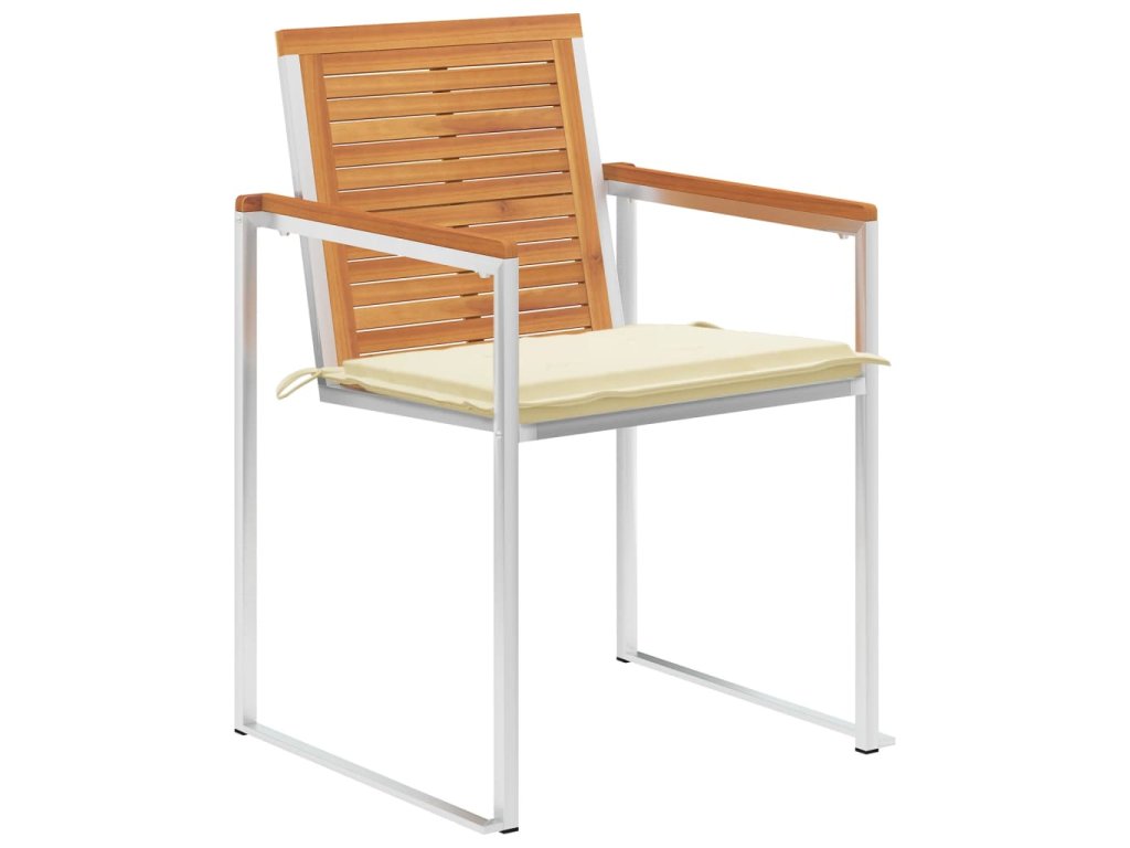 Jídelní židle jsou vyrobeny z masivního akáciového dřeva a vysoce kvalitní nerezové oceli, takže jsou vysoce odolné, nerezavějící, robustní a snadno se čistí vlhkým hadříkem. Přiložená poduška je více než jen praktickým doplňkem, plní také dekorativní funkci. Posaďte se k příjemné večeři pod širým nebem nebo jen relaxujte a užívejte si počasí s touto klasickou sadou zahradních židlí.