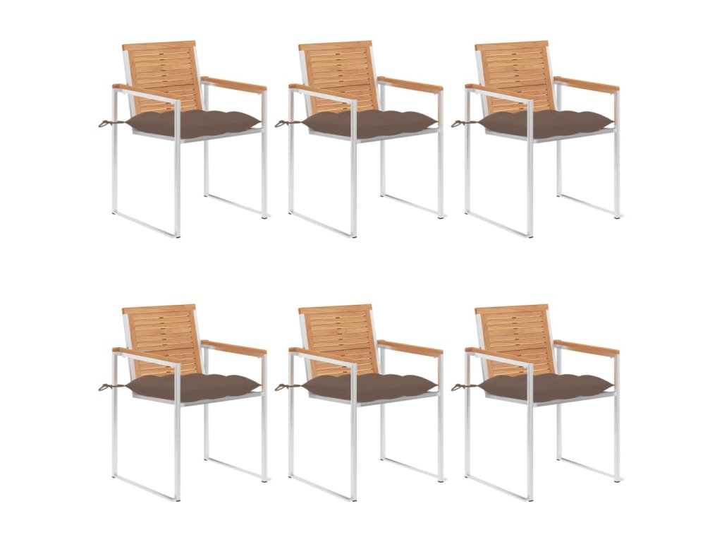 Nábytek je zhotovený z extrémně odolného teakového tvrdého dřeva, které již prošlo procesem smršťování, bylo uměle vysušené a poté jemně a dohladka obroušené. Teakové dřevo je oceňované pro svou výjimečnou pevnost a klimatickou odolnost, a proto je jedním z nejoblíbenějších materiálů pro výrobu zahradního nábytku. Je to skvělá volba, pokud si chcete pořídit venkovní výbavu, která vám vydrží sloužit dlouhá léta. Vzhledem k rámu z vysoce kvalitní nerezové oceli jsou židle zároveň robustní a odolné vůči korozi. Přiložená poduška slouží nejen jako praktický doplněk – plní také dekorativní funkci. Posaďte se a dopřejte si venku skvělou večeři nebo si jen tak odpočiňte a užívejte si počasí s touto klasickou sadou zahradních židlí.