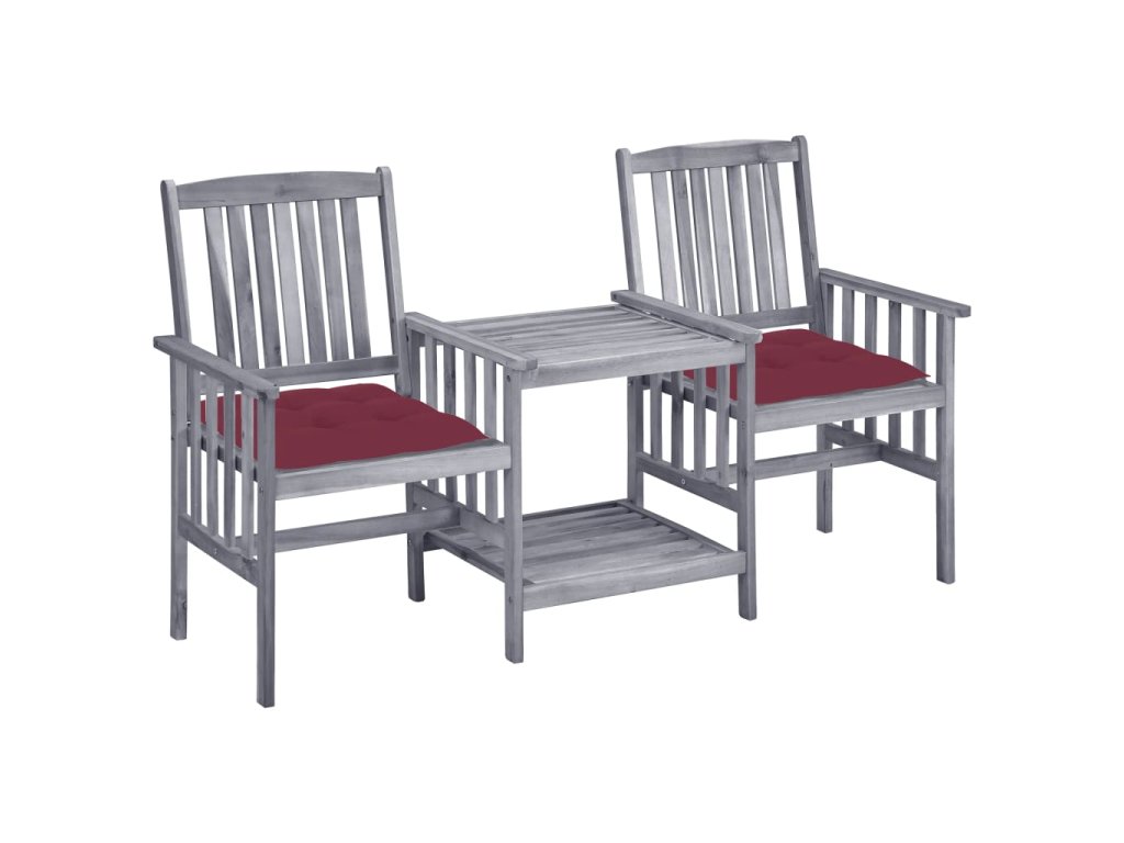 Stůl i židle jsou zhotovené z masivního akáciového dřeva, takže jsou mimořádně stabilní a robustní. Odolná stolní deska a spodní polička se skvěle hodí pro odkládání hrníčků, knih a dalších menších předmětů. Opěradla a područky křesílek vám pak zajistí příjemné posezení a relaxaci. Podušky vám dopřejí větší pohodlí. Každá poduška je opatřená dvěma páry šňůrek pro pevné uchycení.