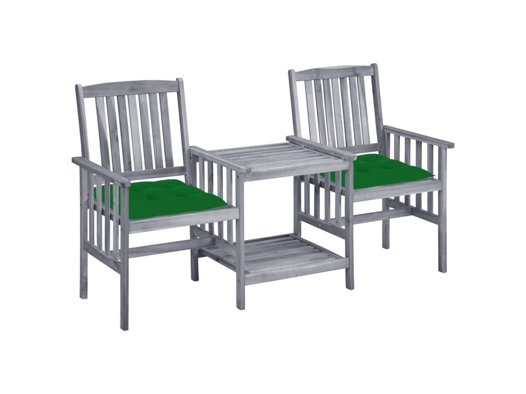 Stůl i židle jsou zhotovené z masivního akáciového dřeva, takže jsou mimořádně stabilní a robustní. Odolná stolní deska a spodní polička se skvěle hodí pro odkládání hrníčků, knih a dalších menších předmětů. Opěradla a područky křesílek vám pak zajistí příjemné posezení a relaxaci. Podušky vám dopřejí větší pohodlí. Každá poduška je opatřená dvěma páry šňůrek pro pevné uchycení.