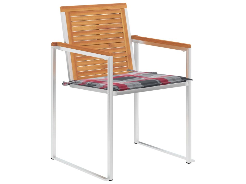 Tyto židle jsou vyrobené z masivního akáciového dřeva s olejovou povrchovou úpravou a z nerezové oceli 304, jsou tudíž odolné proti rzi, robustní a snadno se čistí. Mají podušku, se kterou bude sezení ještě pohodlnější. Každá poduška je opatřená 2 páry šňůrek, kterými můžete podušku pevně přivázat k venkovní židli.