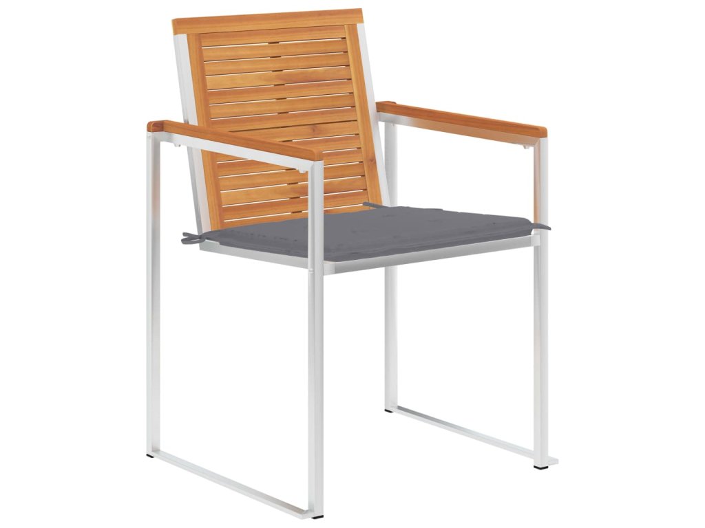 Tyto židle jsou vyrobené z masivního akáciového dřeva s olejovou povrchovou úpravou a z nerezové oceli 304, jsou tudíž odolné proti rzi, robustní a snadno se čistí. Mají podušku, se kterou bude sezení ještě pohodlnější. Každá poduška je opatřená 2 páry šňůrek, kterými můžete podušku pevně přivázat k venkovní židli.