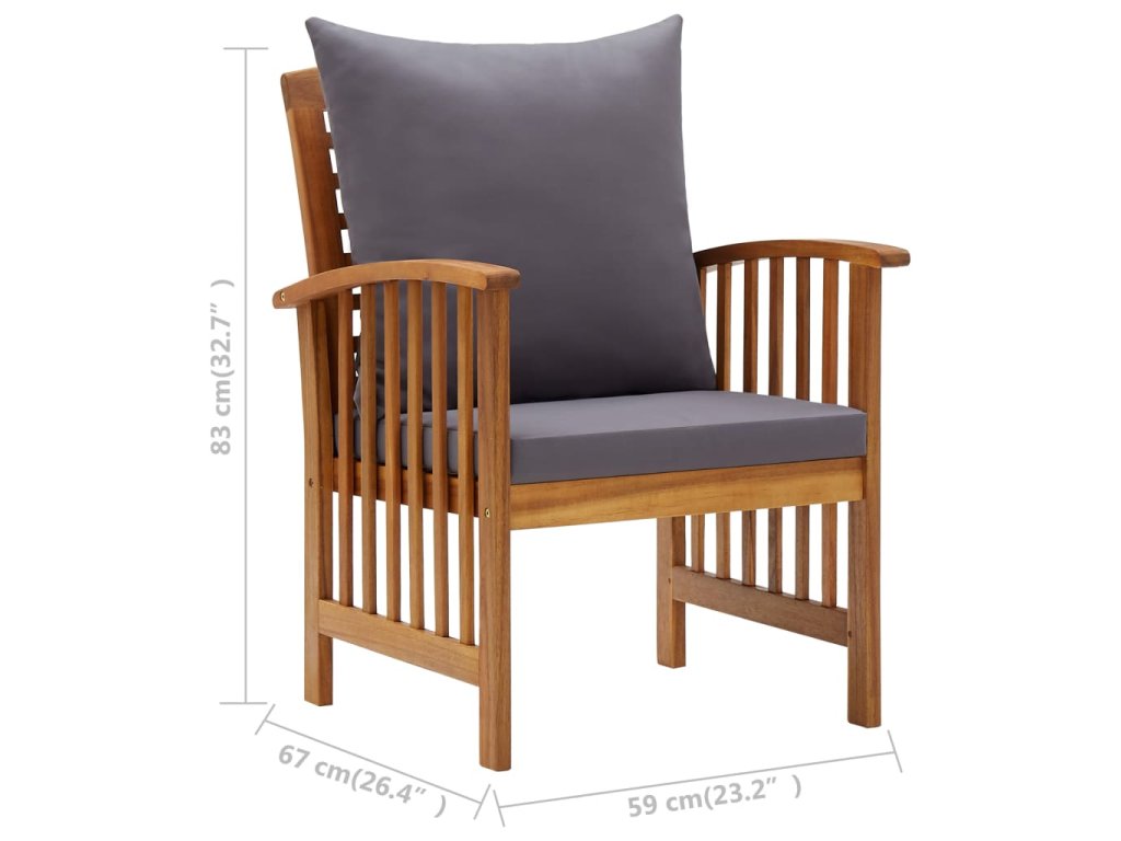 Zahradní křeslo je vyrobené z masivního akáciového dřeva s olejovým povrchem, je stabilní a má dlouhou životnost. Řemeslné zpracování a krásná kresba dřeva dává každému kusu nábytku jeho charakteristický a neopakovatelný vzhled. Podušky na sedáku a polštář za záda přispívá k pohodlnému posezení.