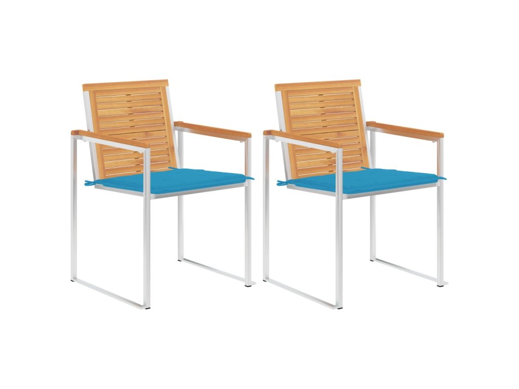 Nábytek je zhotovený z extrémně odolného teakového tvrdého dřeva, které již prošlo procesem smršťování, bylo uměle vysušené a poté jemně a dohladka obroušené. Teakové dřevo je oceňované pro svou výjimečnou pevnost a klimatickou odolnost, a proto je jedním z nejoblíbenějších materiálů pro výrobu zahradního nábytku. Je to skvělá volba, pokud si chcete pořídit venkovní výbavu, která vám vydrží sloužit dlouhá léta. Židle jsou vyrobené z vysoce kvalitní nerezové oceli 304, takže nerezaví a snadno se čistí. Podušky vám zajistí mimořádné pohodlí. Každá poduška je opatřená dvěma páry šňůrek, za které můžete podušku upevnit na místě.