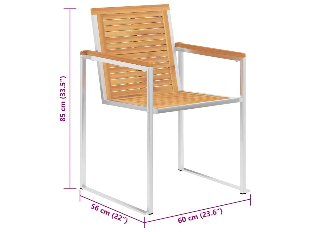 Nábytek je zhotovený z extrémně odolného teakového tvrdého dřeva, které již prošlo procesem smršťování, bylo uměle vysušené a poté jemně a dohladka obroušené. Teakové dřevo je oceňované pro svou výjimečnou pevnost a klimatickou odolnost, a proto je jedním z nejoblíbenějších materiálů pro výrobu zahradního nábytku. Je to skvělá volba, pokud si chcete pořídit venkovní výbavu, která vám vydrží sloužit dlouhá léta. Židle jsou vyrobené z vysoce kvalitní nerezové oceli 304, takže nerezaví a snadno se čistí. Podušky vám zajistí mimořádné pohodlí. Každá poduška je opatřená dvěma páry šňůrek, za které můžete podušku upevnit na místě.