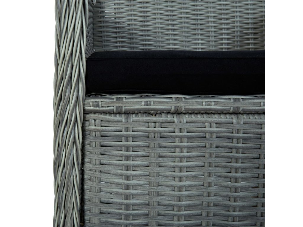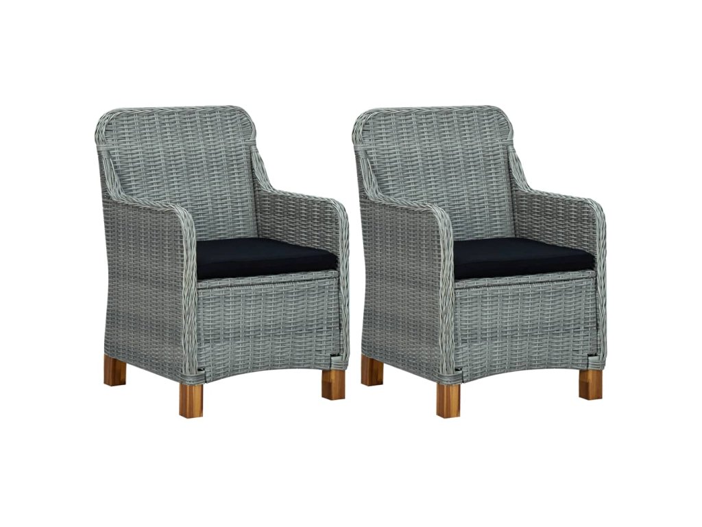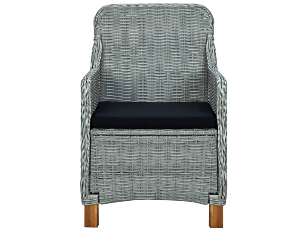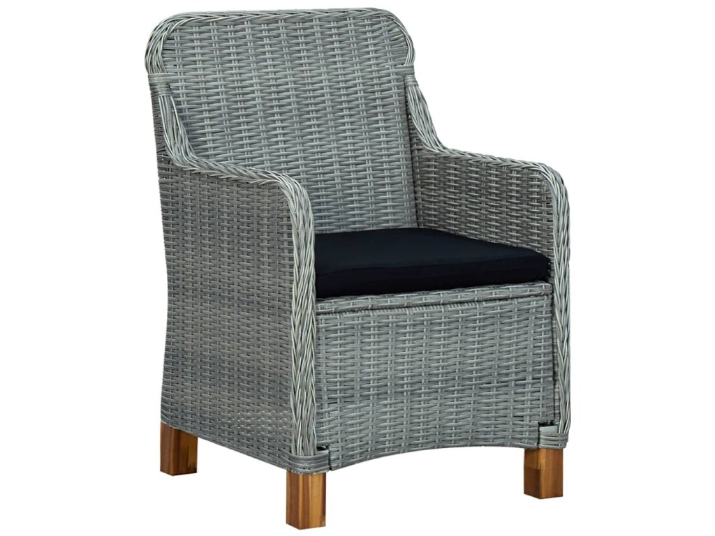 Zahradní židle má práškově lakovaný ocelový rám, potažený kulatým PE ratanem. Je robustní a snadno se čistí. Na silně polstrovaných poduškách na sedák se příjemně a pohodlně odpočívá. Potahy na poduškách mají zip, takže je můžete snadno sejmout a vyprat. Židle mají robustní a stabilní nohy z masivního akáciového dřeva. Jejich konstrukce je lehká, což usnadňuje přenášení židlí.