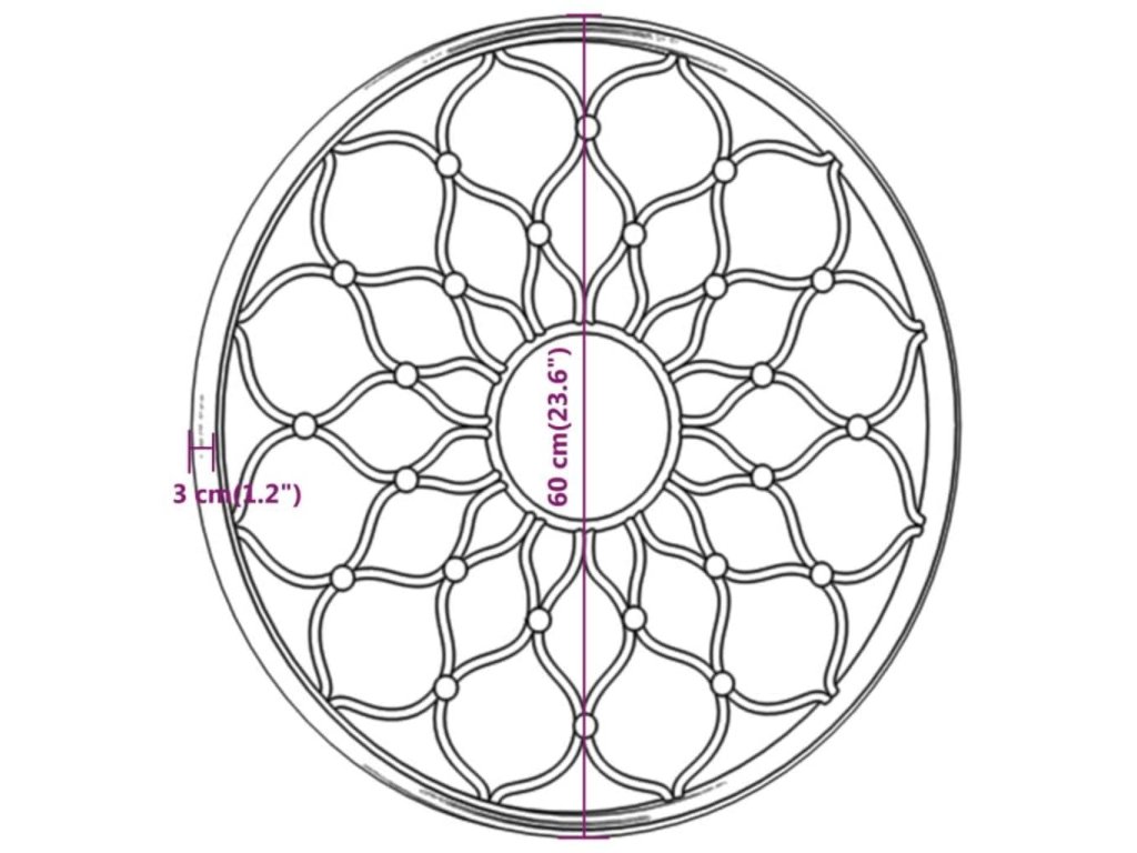 Rám zrcadla je vyroben ze železa, takže je odolné a stabilní. Se svým dekorativním květinovým designem se skvěle hodí pro venkovní použití. Lze jej použít ke zvýraznění zahradního prvku jeho odrazem v zrcadle nebo k odklonu světla do tmavého rohu. Umístění zrcadla v zahradě je kreativní způsob, jak povznést její vzhled a opticky jí zvětšit. Pomocí předvrtaného otvoru v jeho horní části lze dekorativní zrcadlo snadno připevnit na zeď.