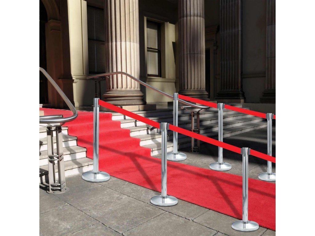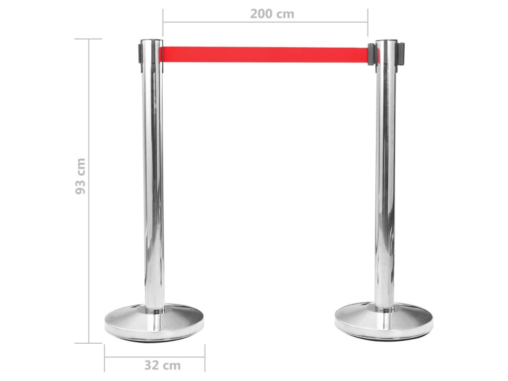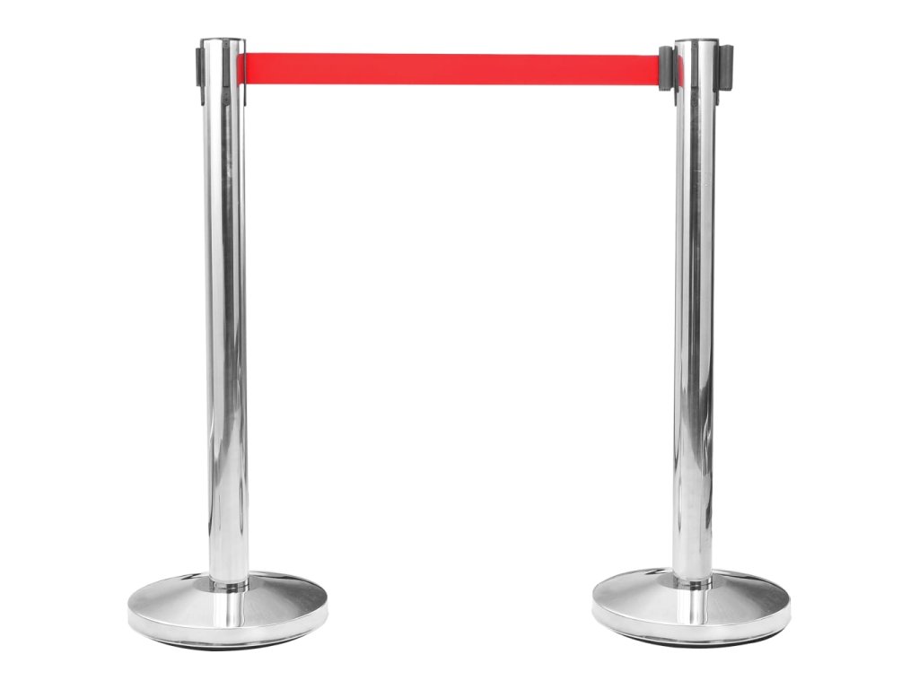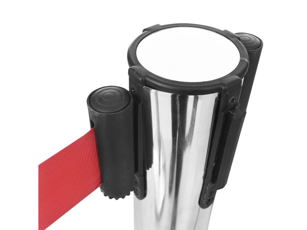 Sloupky z kvalitní nerezové oceli jsou korozivzdorné a odolné vůči škrábancům a dalším typům poškození. Jsou proto perfektní pro dlouhodobé použití. Každý sloupek je opatřený cementovou základnou, která zaručuje výbornou stabilitu proti větru. Kryt základny chrání podlahu před poškrábáním. Samonavíjecí pás je zakončený zajišťovacím čepem a je vybavený čtyřsměrným systémem, aby vyhověl vašim specifickým potřebám.