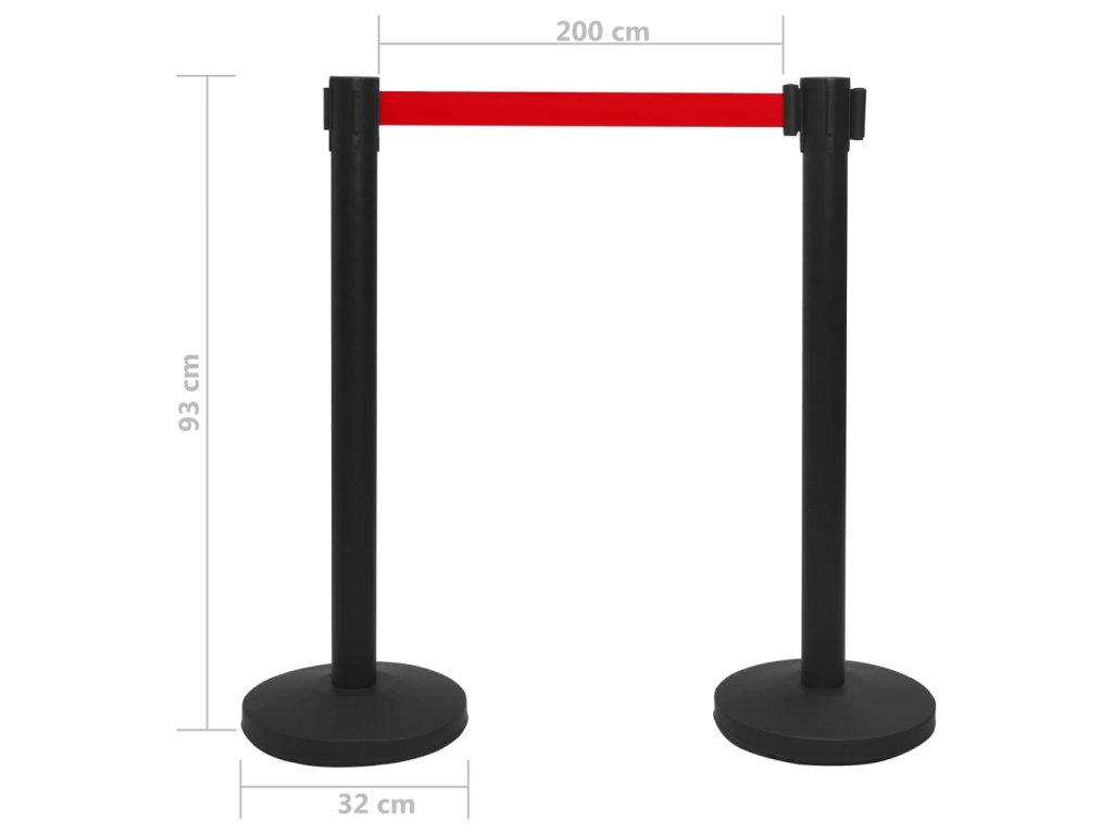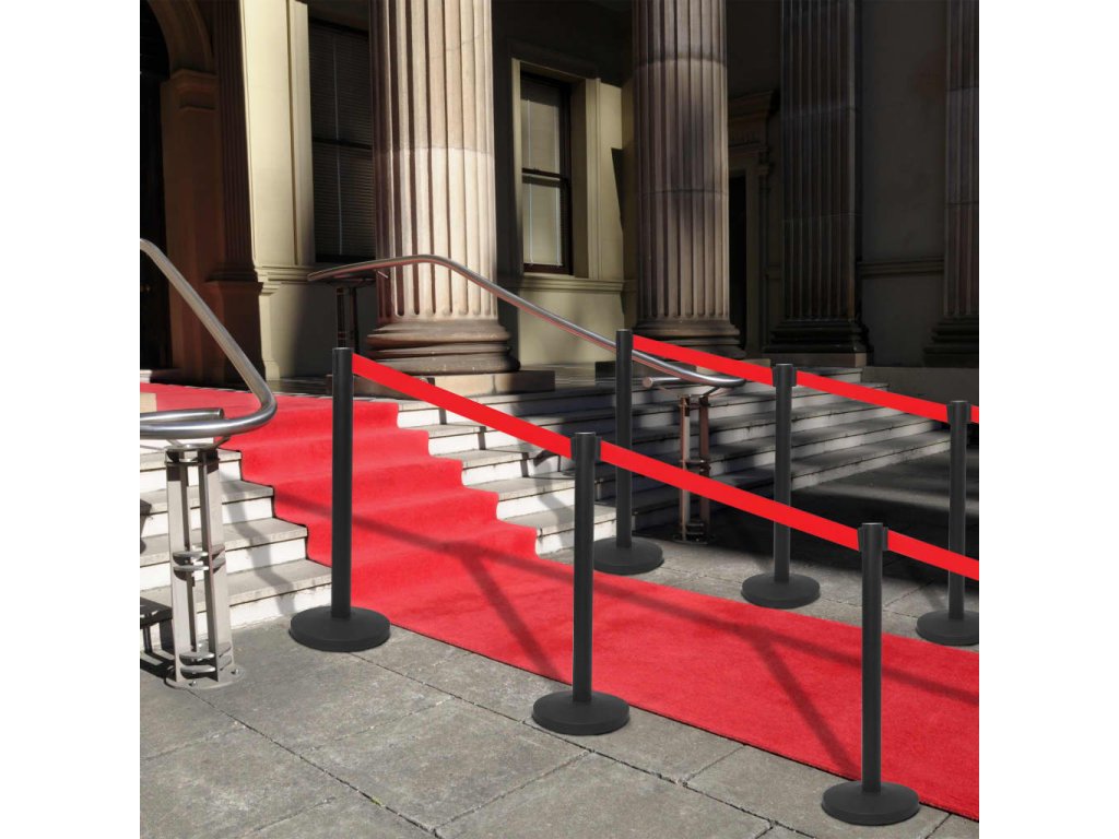 Sloupky z kvalitní oceli jsou korozivzdorné a odolné vůči škrábancům a dalším typům poškození. Skvěle se proto hodí pro dlouhodobé použití. Každý sloupek je opatřený cementovou základnou, která zaručuje výbornou stabilitu proti větru. Kryt základny chrání podlahu před poškrábáním. Samonavíjecí pás je zakončený zajišťovacím čepem a disponuje čtyřsměrným systémem, aby vyhověl vašim konkrétním potřebám.