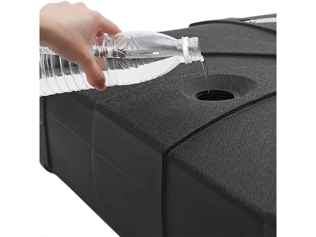- Odolná konstrukce: Vyrobena z vysoce kvalitního, na počasí odolného plastu, tato základna slunečníku je navržena tak, aby odolávala venkovním podmínkám. Její dlouhá životnost nabízí spolehlivou podporu den za dnem, sezónu za sezónou. Robustní materiál odolává opotřebení, což zajišťuje plynulé fungování a minimální údržbu každé léto.