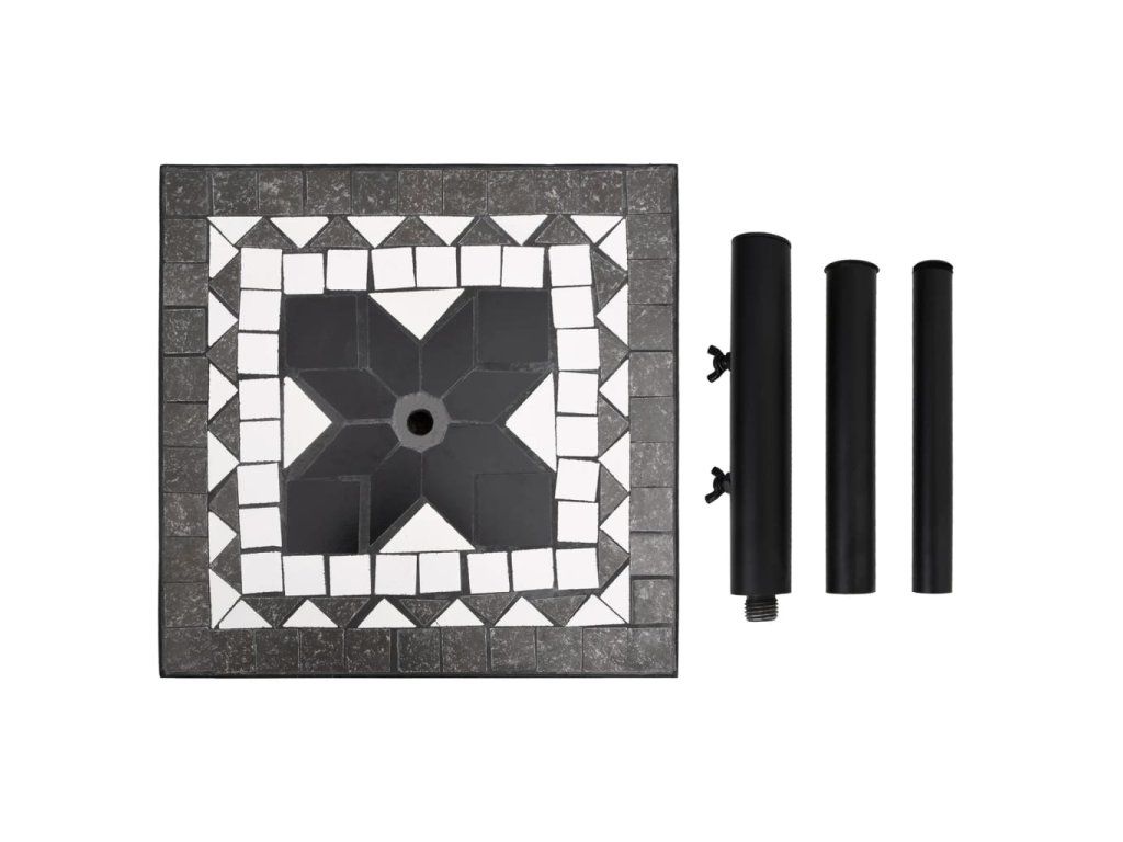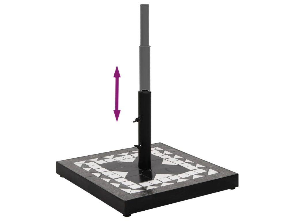 - Praktický povrch: Povrch stojanu na slunečníky je vyroben z keramických dlaždic. Snadno se čistí a udržuje a zároveň přidává zátěž.