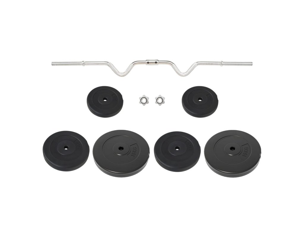 - Hmotnost kotoučů: 2x 5 kg, 2x 7,5 kg, 2x 15 kg