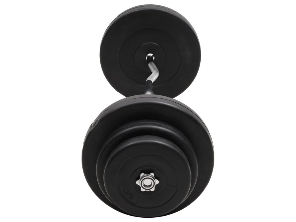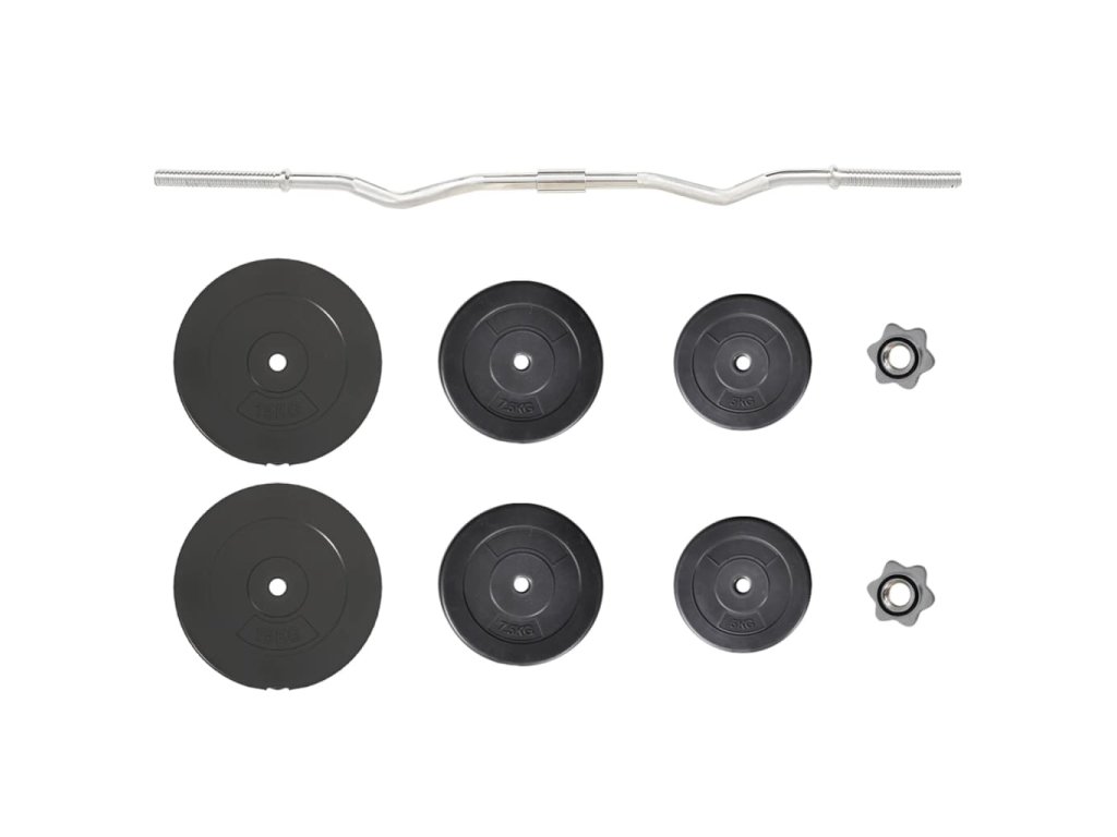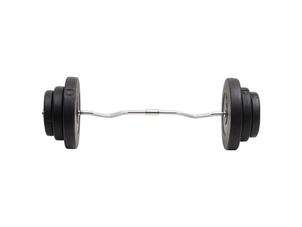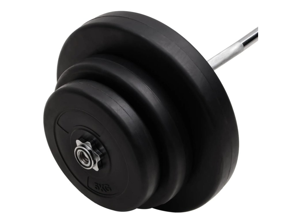 - Odolný materiál: Činka je vyrobena z pochromované oceli a je pevná a stabilní. Závaží je vyrobené z cementu a potažené robustním plastem šetrným k podlaze. Nezaznamenáte tedy žádné nepříjemné řinčení závaží.