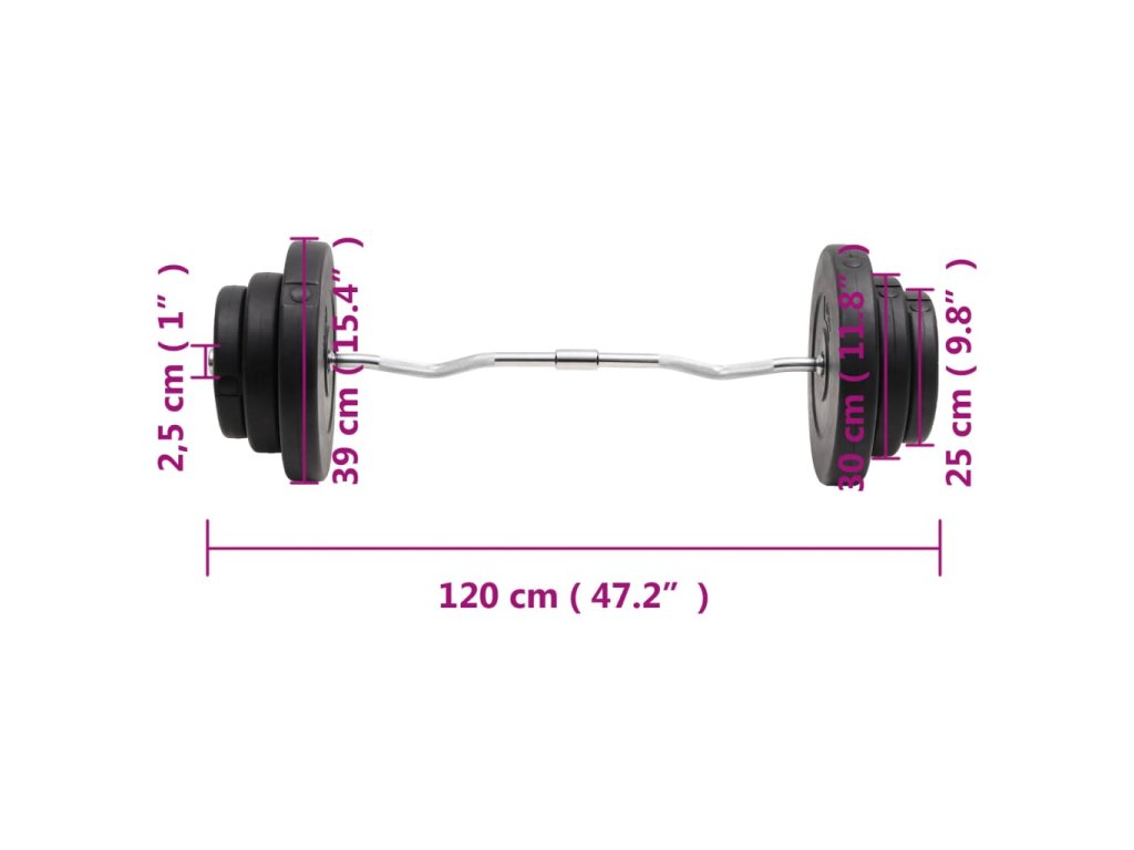 - Rozměry činkové tyče: 25 mm x 120 cm (průměr x D)