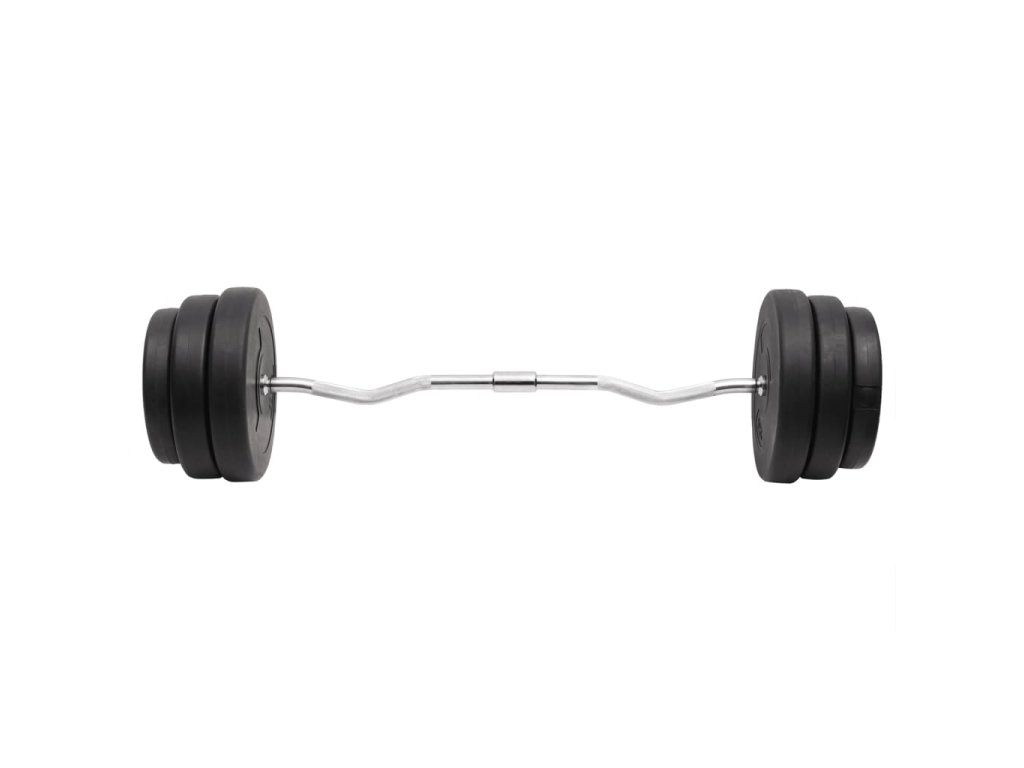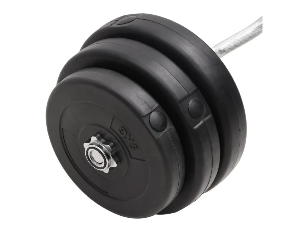 - Odolný materiál: Činka je vyrobena z pochromované oceli a je pevná a stabilní. Závaží je vyrobené z cementu a potažené robustním plastem šetrným k podlaze. Díky tomu nezaznamenáte žádné nepříjemné řinčení závaží.