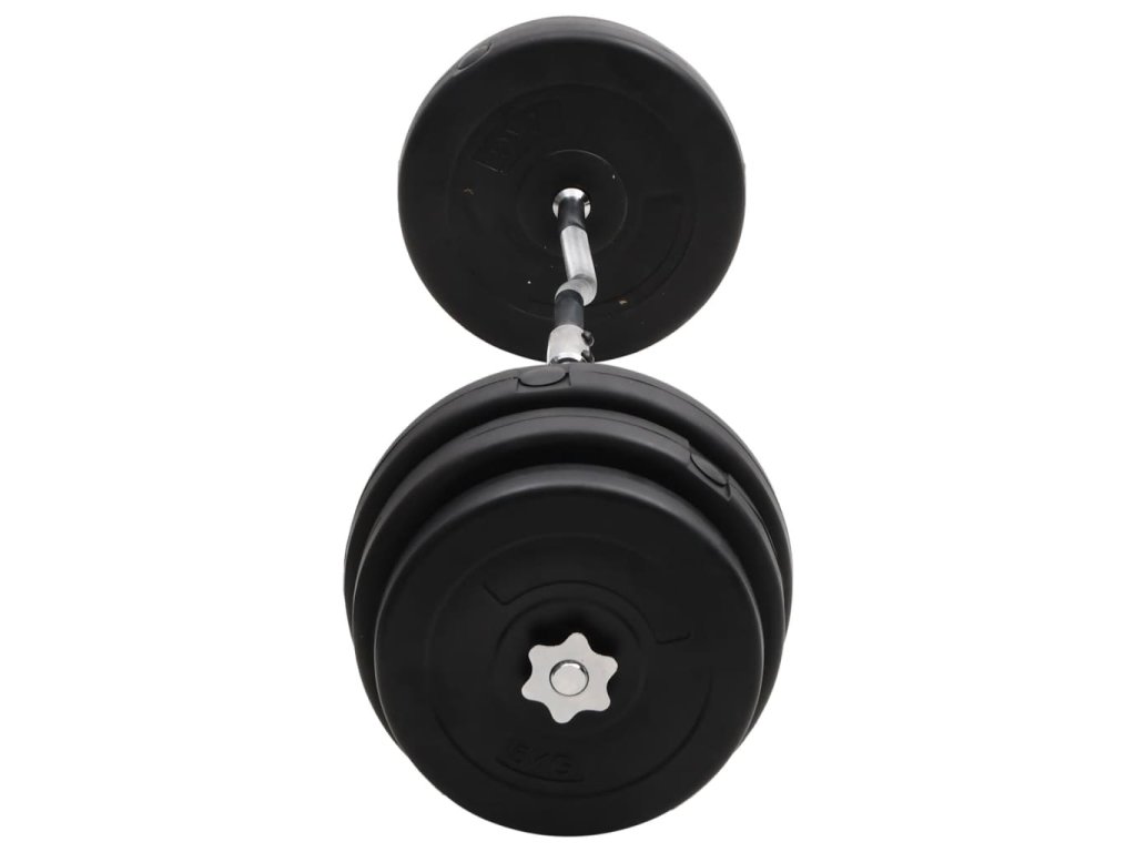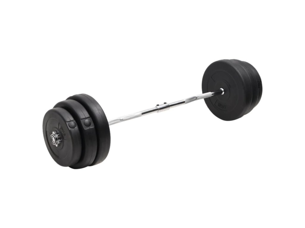 - Hmotnost kotoučů: 4x 5 kg, 2x 7,5 kg, 2x 10 kg, 2x 15 kg