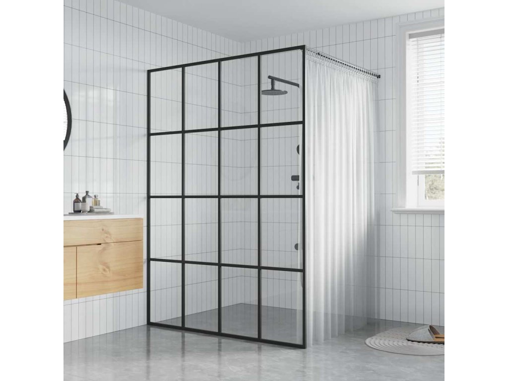 - Materiál: čiré tvrzené ESG sklo (zástěna) + hliník (profil)