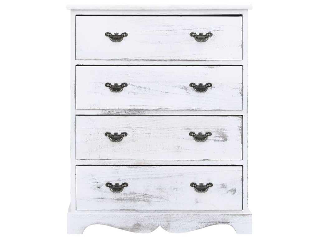 Tato skříňka je vyrobena z kvalitního dřeva pavlovnie a topolu a MDF desky, je tedy mimořádně robustní a má dlouhou životnost. Má 4 zásuvky, které poskytují dostatek úložného prostoru pro vaše osobní potřeby, jako jsou klíče, poznámkové bloky, knihy, časopisy nebo jiné drobnosti a nezbytnosti.