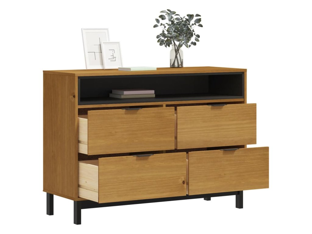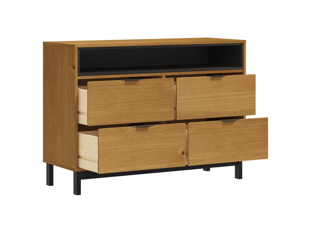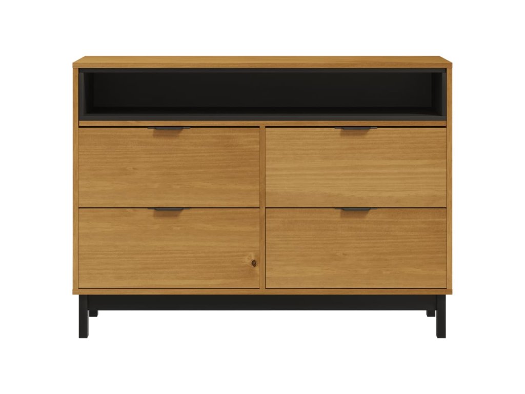- Masivní borové dřevo: Masivní borové dřevo je krásný přírodní materiál. Borové dřevo má rovnou kresbu a obsahuje suky, které materiálu dodávají jeho charakteristický, rustikální vzhled. Komoda je vyrobena z masivního borového dřeva a je odolná a robustní.