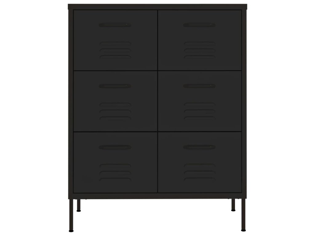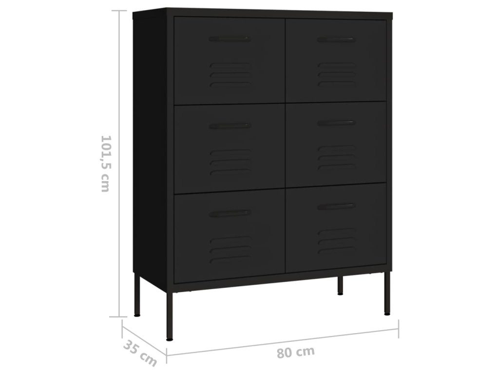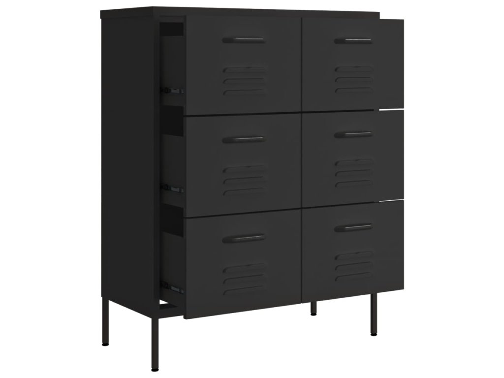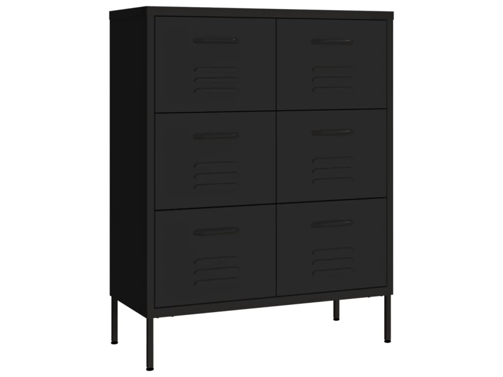 Tato úložná skříň je vyrobena z oceli, je tedy pevná a stabilní. Skříňka má 6 zásuvek, které poskytují dostatek prostoru pro přehledné uložení DVD, multimediálních zařízení, knih a drobných nezbytností, které chcete mít po ruce. Zásuvky s třídílnými pojezdy s kuličkovými ložisky zajišťují plynulé otevírání a zavírání. I při zvýšené zátěži lze tyto zásuvky zcela vysunout. Skříňka se snadno čistí vlhkým hadříkem.