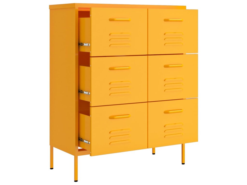 Tato úložná skříň je vyrobena z oceli, je tedy pevná a stabilní. Skříňka má 6 zásuvek, které poskytují dostatek prostoru pro přehledné uložení DVD, multimediálních zařízení, knih a drobných nezbytností, které chcete mít po ruce. Zásuvky s třídílnými pojezdy s kuličkovými ložisky zajišťují plynulé otevírání a zavírání. I při zvýšené zátěži lze tyto zásuvky zcela vysunout. Skříňka se snadno čistí vlhkým hadříkem.
