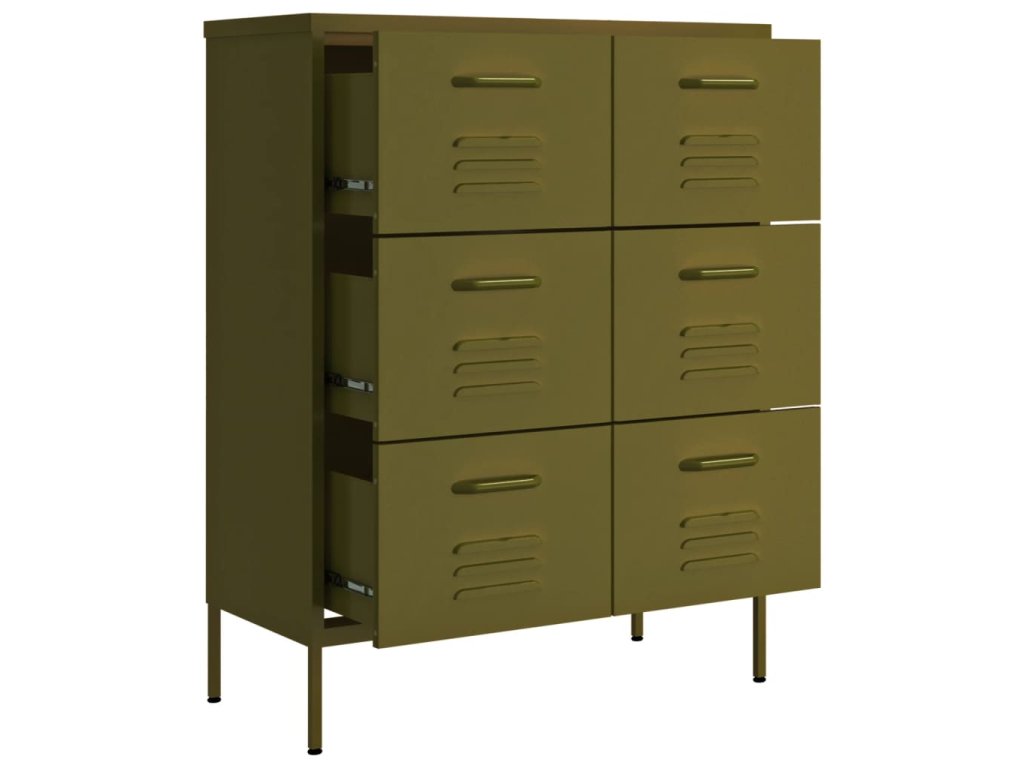 Tato úložná skříň je vyrobena z oceli, je tedy pevná a stabilní. Skříňka má 6 zásuvek, které poskytují dostatek prostoru pro přehledné uložení DVD, multimediálních zařízení, knih a drobných nezbytností, které chcete mít po ruce. Zásuvky s třídílnými pojezdy s kuličkovými ložisky zajišťují plynulé otevírání a zavírání. I při zvýšené zátěži lze tyto zásuvky zcela vysunout. Skříňka se snadno čistí vlhkým hadříkem.