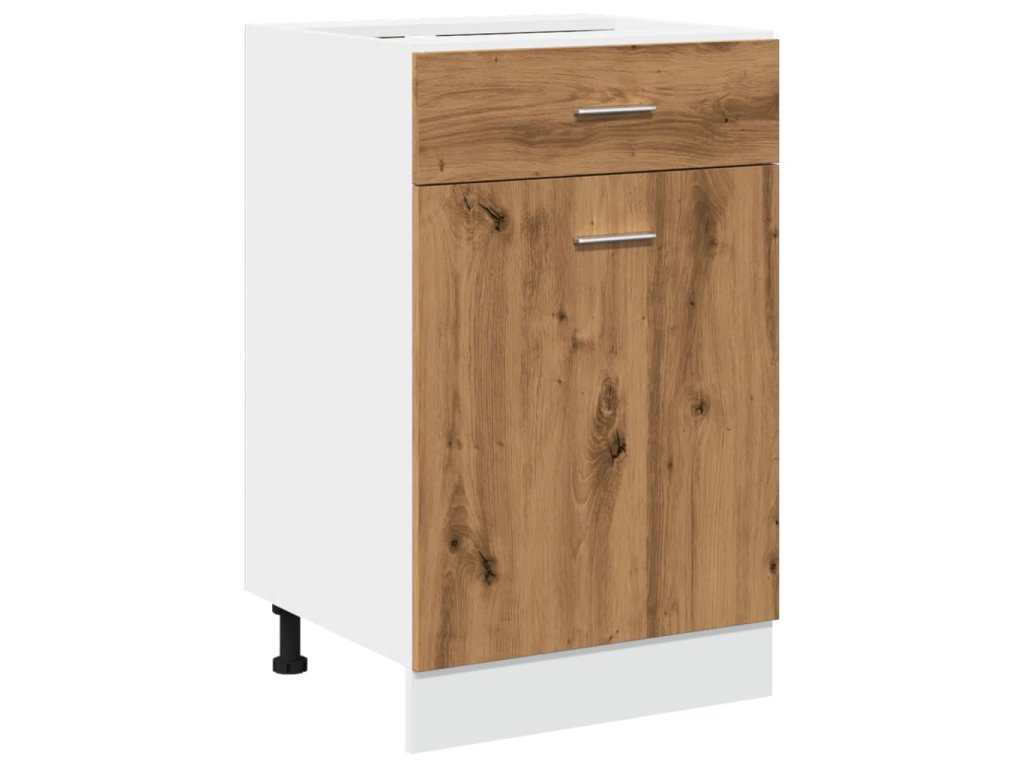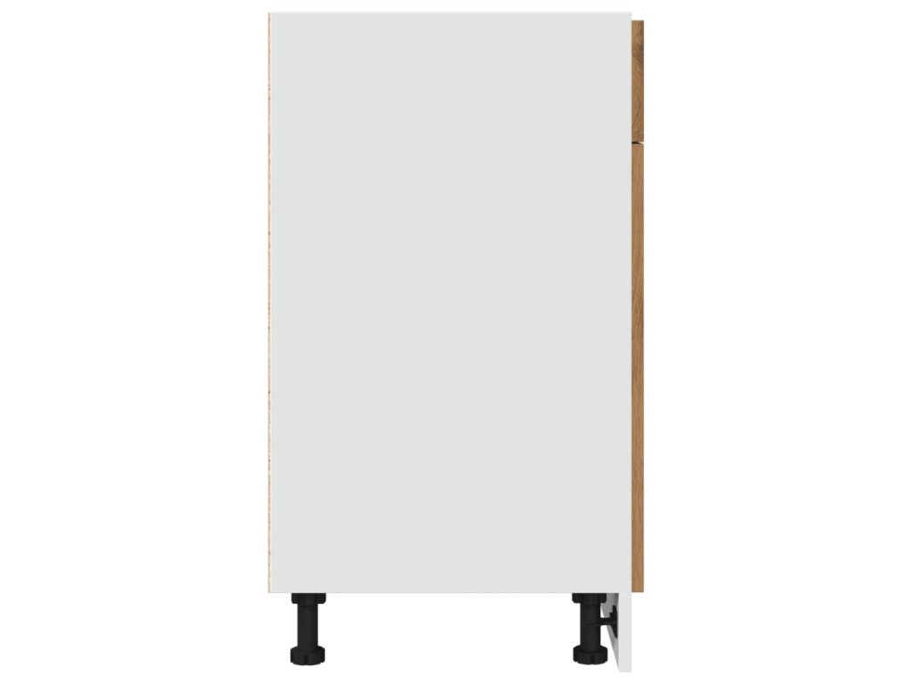 - Odolný materiál: Kompozitní dřevo je mimořádně kvalitní, má hladký povrch a vyznačuje se pevností, stabilitou a odolností proti vlhkosti. Kuchyňská skříňka je zhotovená z kompozitního dřeva, což usnadňuje její čištění.