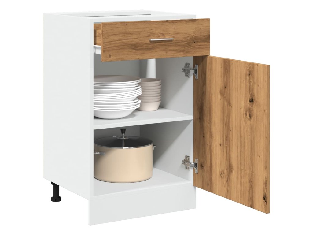 - Spousta úložného prostoru: Skříňka má 1 zásuvku a 2 přihrádky a nabízí dostatek prostoru pro uložení misek, talířů, hrnců nebo kuchyňských spotřebičů.