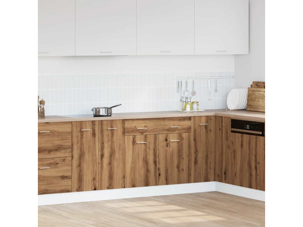 - Odolný materiál: Kompozitní dřevo je mimořádně kvalitní, má hladký povrch a vyznačuje se pevností, stabilitou a odolností proti vlhkosti. Kuchyňská skříňka je zhotovená z kompozitního dřeva, což usnadňuje její čištění.