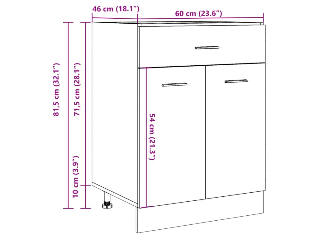 - Spousta úložného prostoru: Skříňka má 1 zásuvku a 2 přihrádky a nabízí dostatek prostoru pro uložení misek, talířů, hrnců nebo kuchyňských spotřebičů.